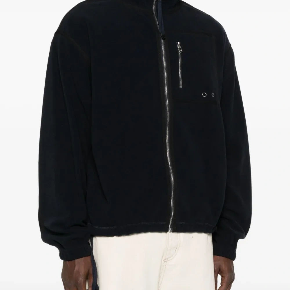 черный застежка-молния спереди прорезной карман подол на кулиске высокий воротник длинные рукава