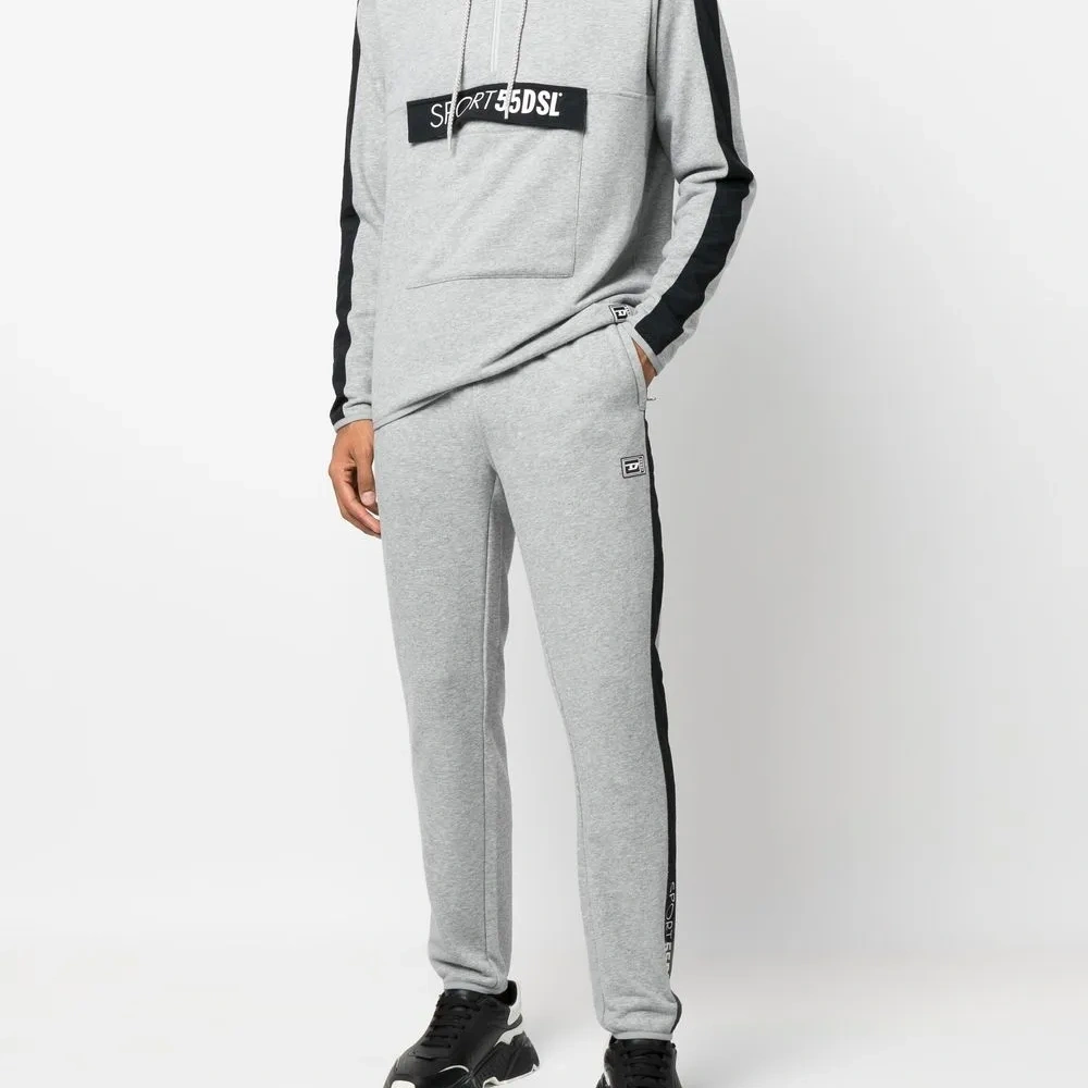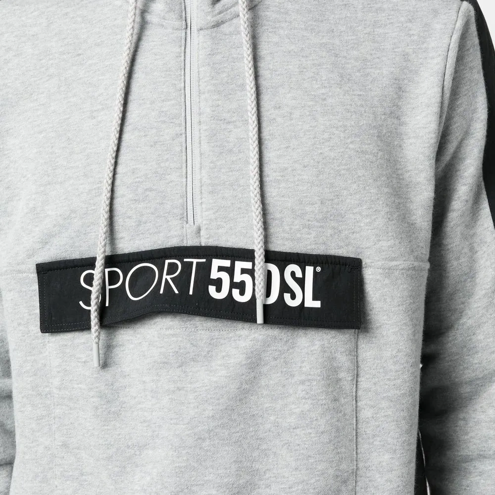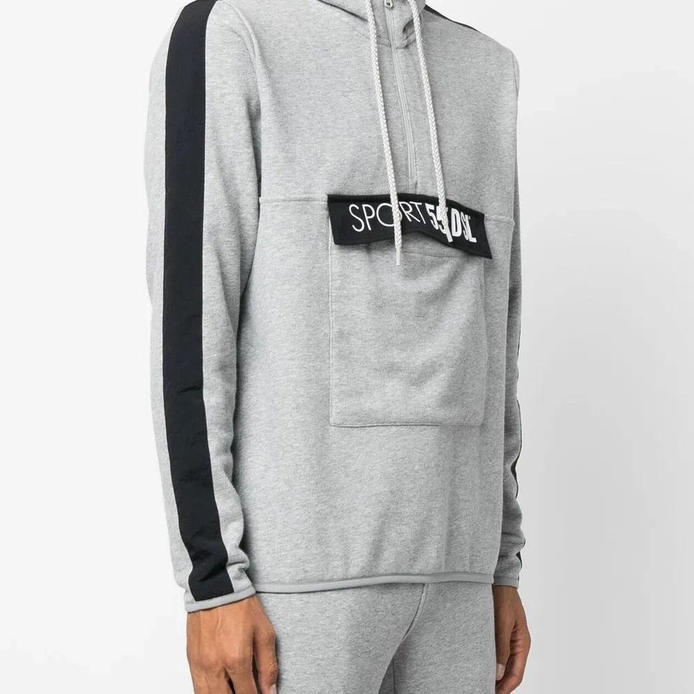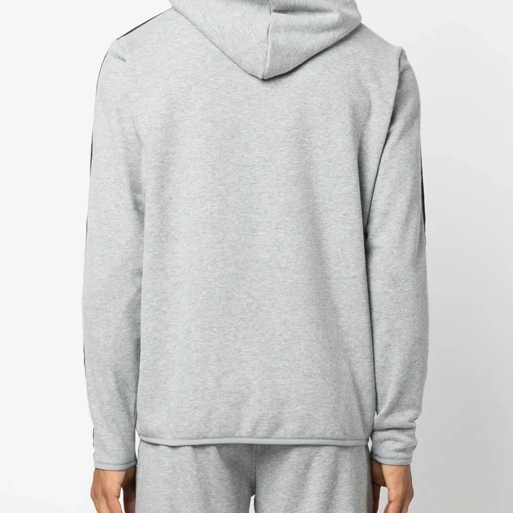 Серый, черный, хлопок, флисовый материал, логотип спереди, полоска сбоку, затягивающийся на шнурок капюшон, передний карман с клапаном, длинные рукава и прямой подол.