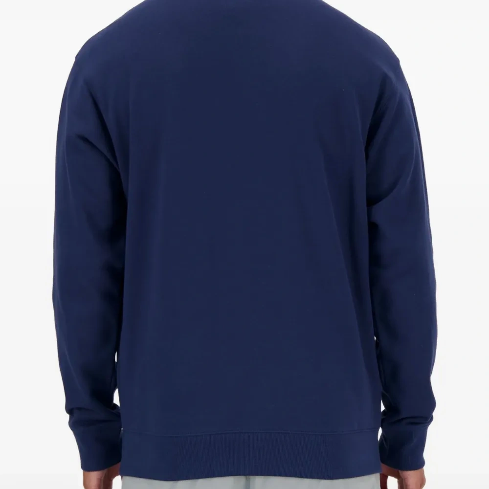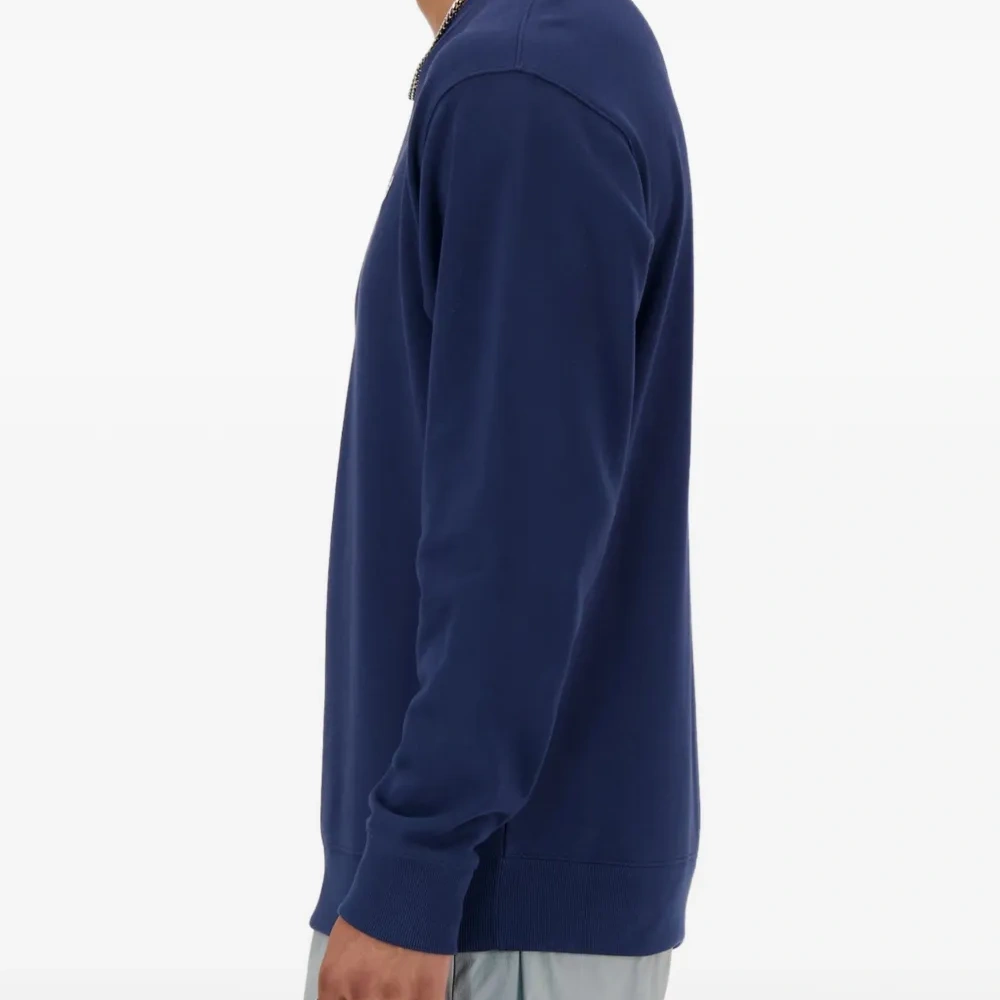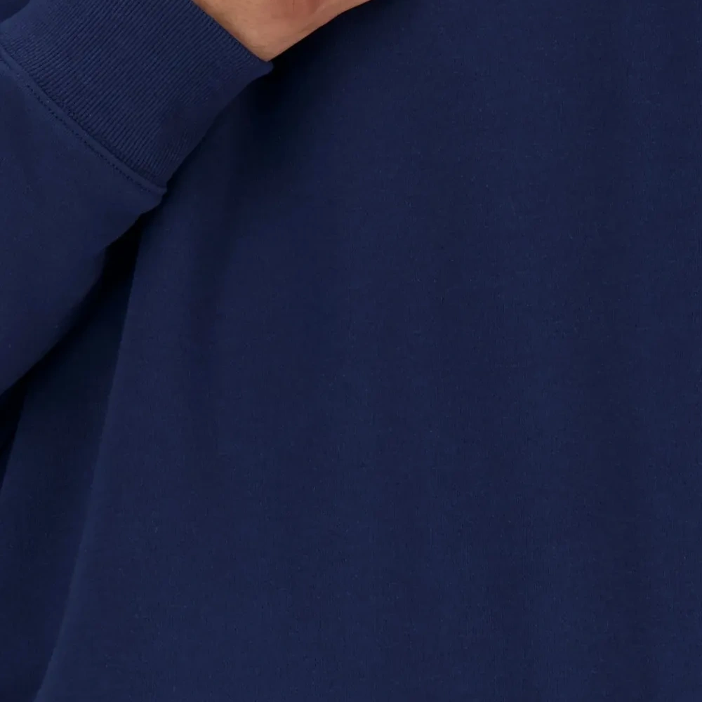 темно-синий свитшот с вышитым логотипом, круглым вырезом, длинными рукавами, ребристыми манжетами и поясом