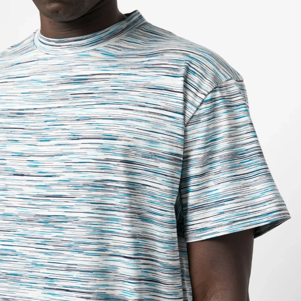 Белый, синий, черный, хлопок, узор в горизонтальную полоску, круглый вырез, короткие рукава и прямой подол. Эта модель, как и другие вещи Missoni, выполнена вручную, поэтому товар может незначительно отличаться от фотографий на сайте.