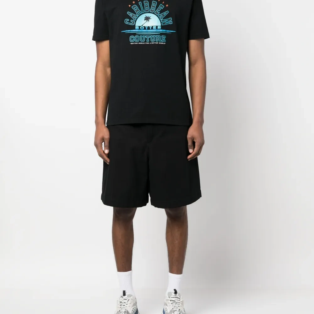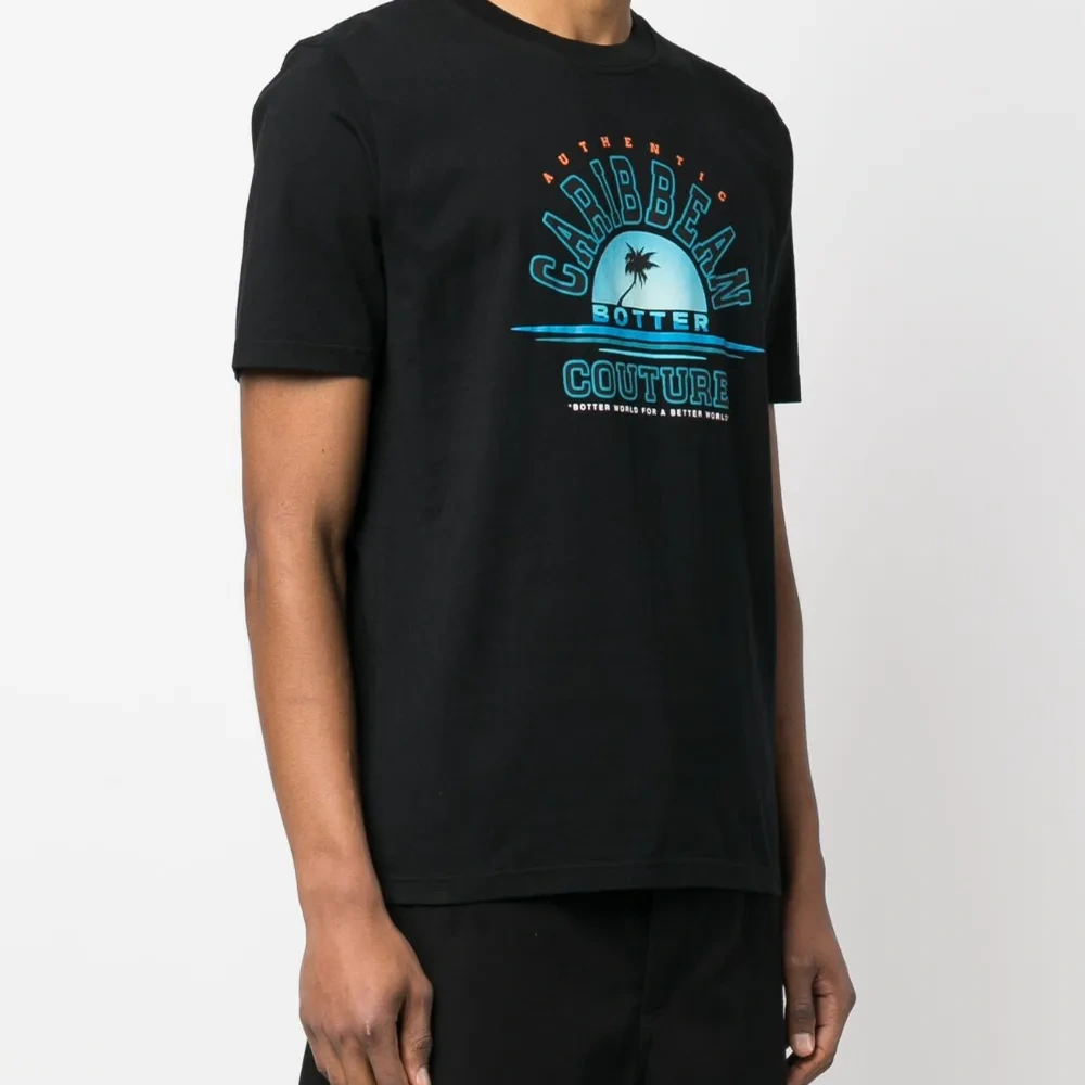 Черный/разноцветный, органический хлопок, графичный принт спереди, круглый вырез, короткие рукава и прямой подол. Узнать больше о том, какие товары получают отметку «Ответственный выбор», можно из материала «Как мы оцениваем экологичность и этичность».