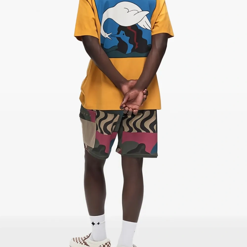 оранжевый иллюстрация лебедя вышитый логотип короткие рукава круглый вырез хлопок