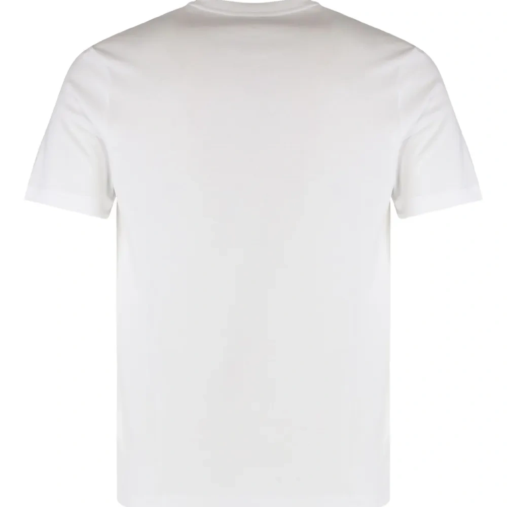 белая хлопковая футболка с короткими рукавами, круглым вырезом и логотипом