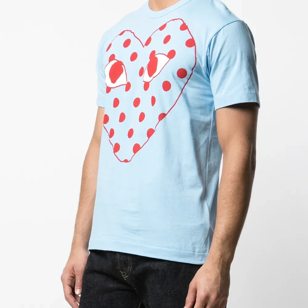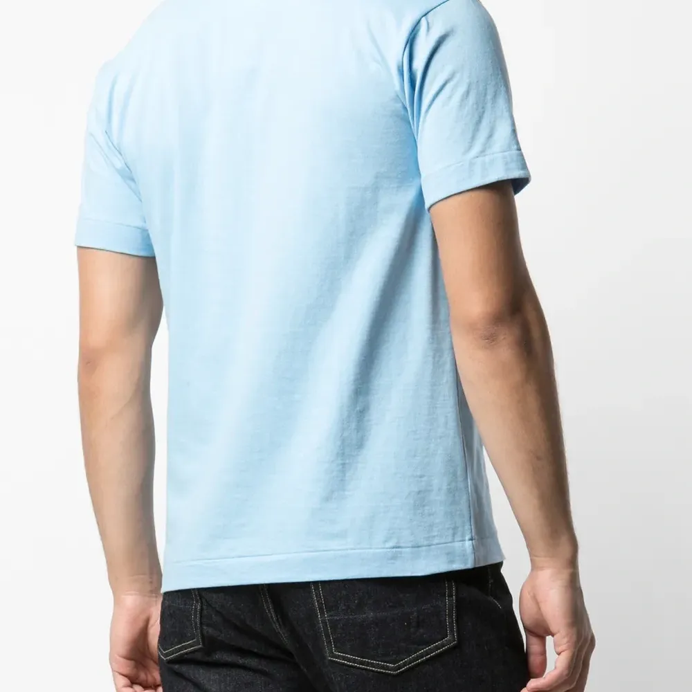 Футболка с логотипом от Comme des Garçons Play. Круглый вырез, короткие рукава, принт с логотипом спереди и прямой подол. Цвет: синий.