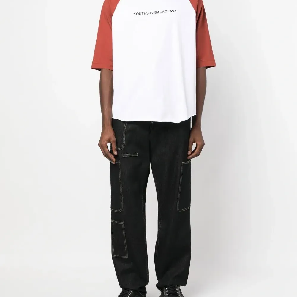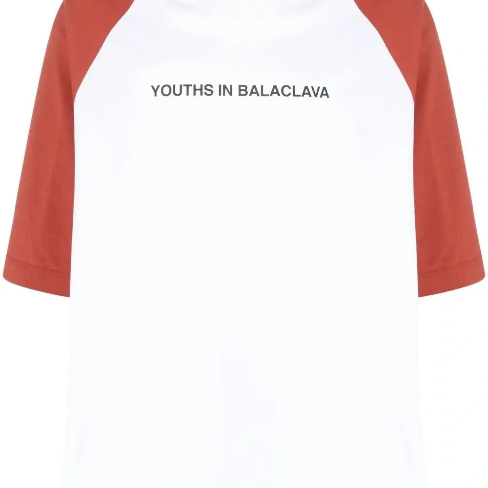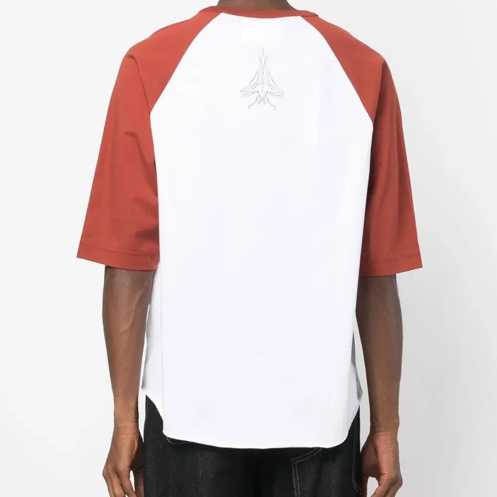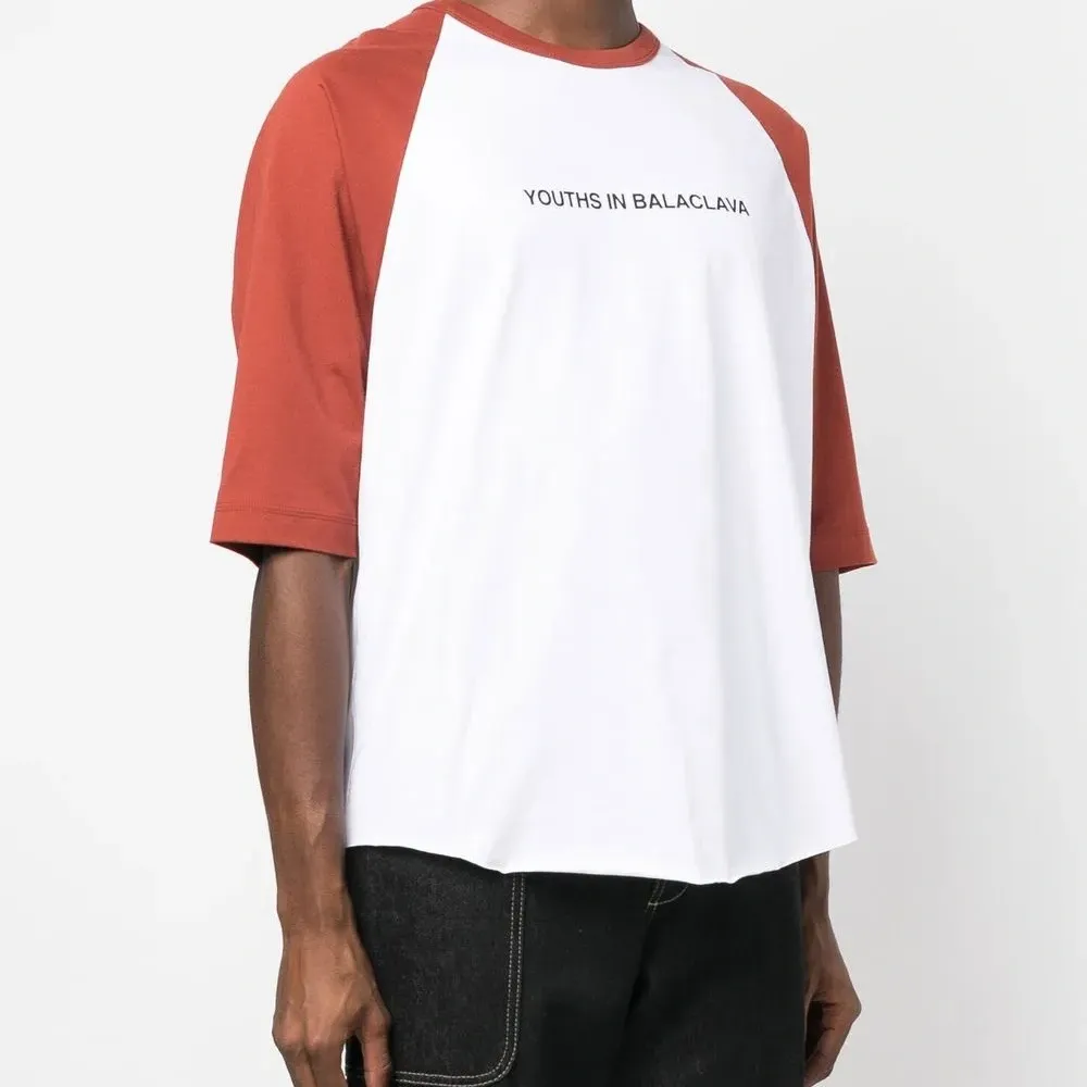 Темно-красный, серовато-белый, принт с надписью, круглый вырез, короткие рукава и прямой подол.