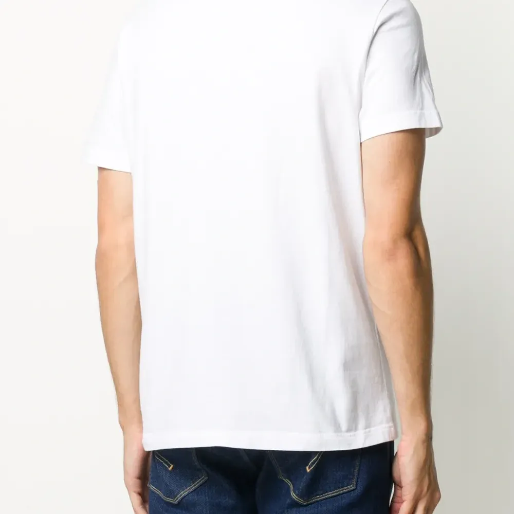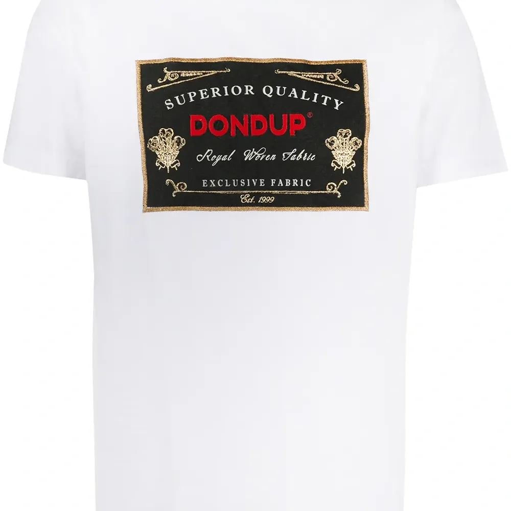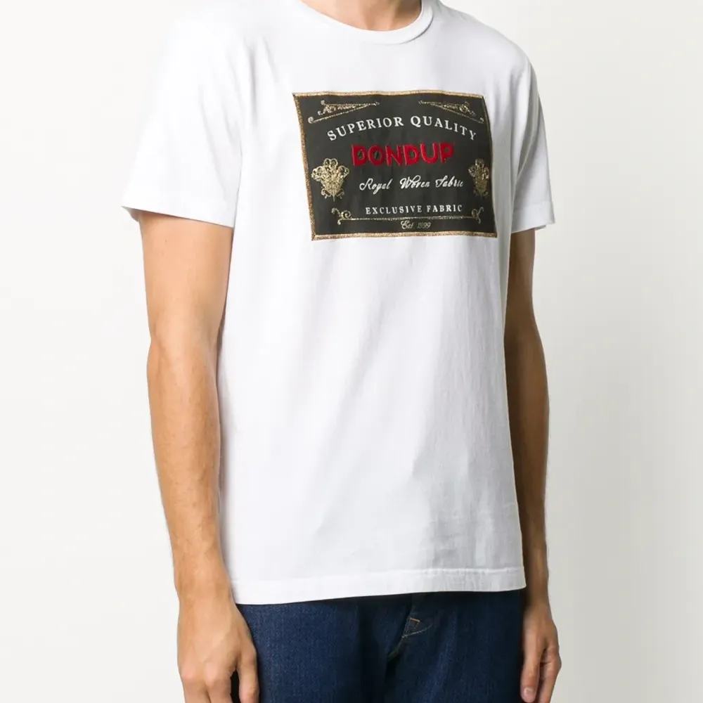 Логотип спереди, круглый вырез, короткие рукава и прямой подол. Цвет: белый.