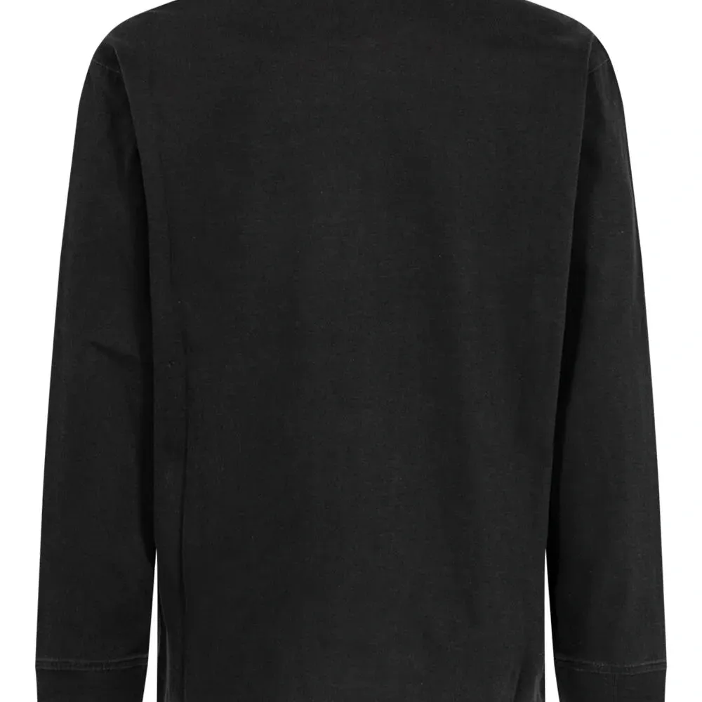 Черный, хлопок, ткань джерси, вышитый логотип на груди, круглый вырез, длинные рукава и прямой подол. Это унисекс-модель. Обратите внимание, что для нее используется мужская размерная сетка.