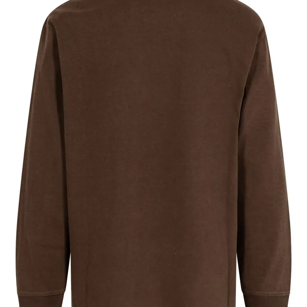 Коричневый, хлопок, ткань джерси, вышитый логотип на груди, круглый вырез, длинные рукава и прямой подол. Это унисекс-модель. Обратите внимание, что для нее используется мужская размерная сетка.