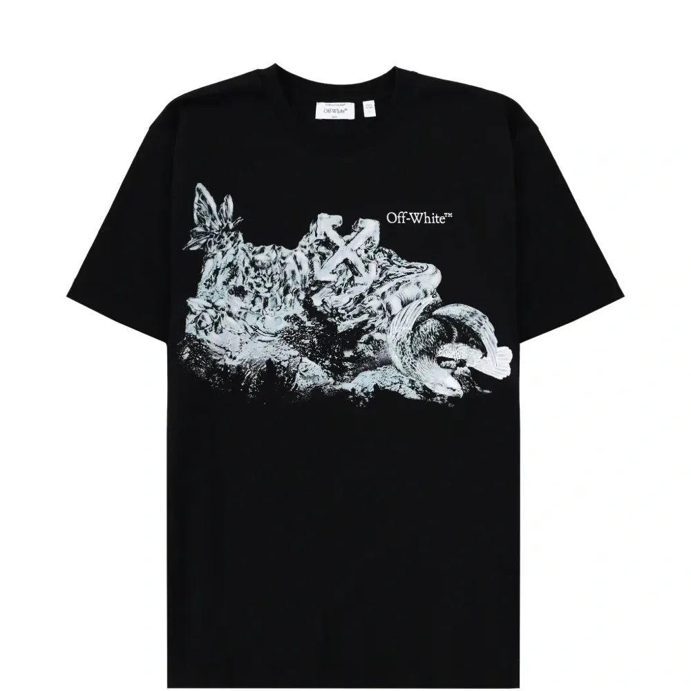 черная футболка с графическим принтом, круглым вырезом и короткими рукавами