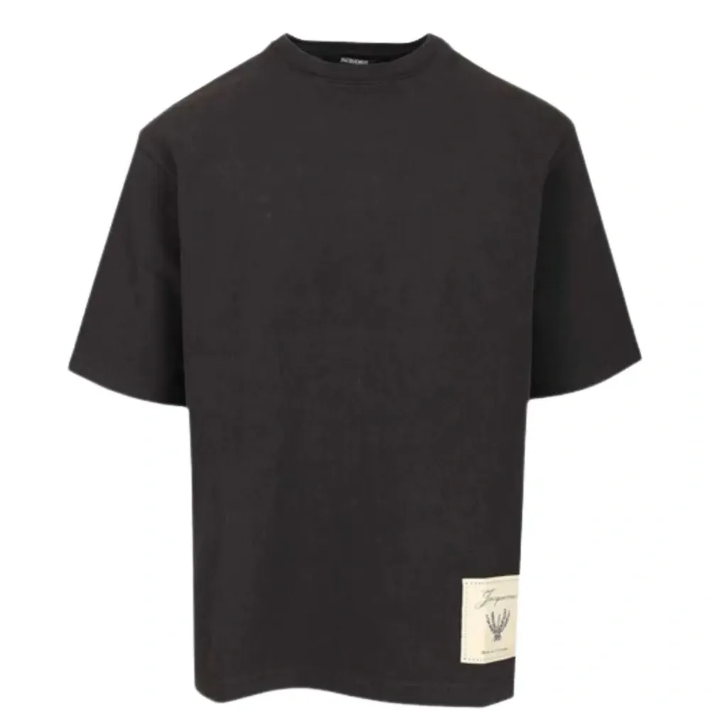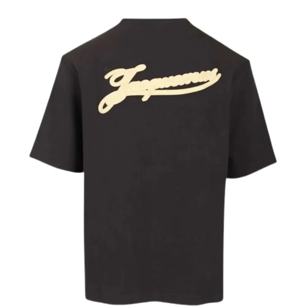 черная футболка с вышивкой логотипа rosemary, круглый вырез, короткие рукава, спущенные плечи