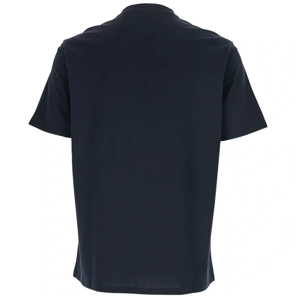 синяя футболка с круглым вырезом, короткими рукавами и принтом-логотипом