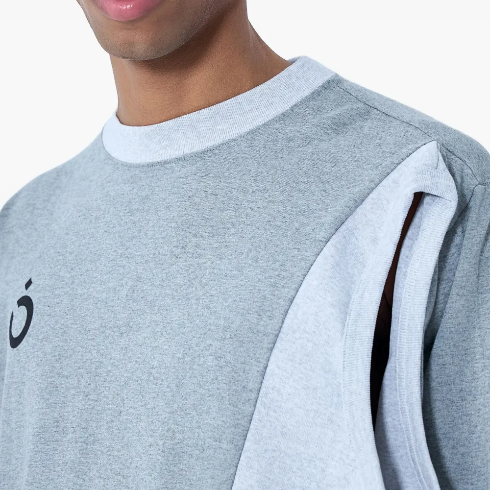 серая толстовка с круглым вырезом, длинными рукавами и асимметричными вставками
