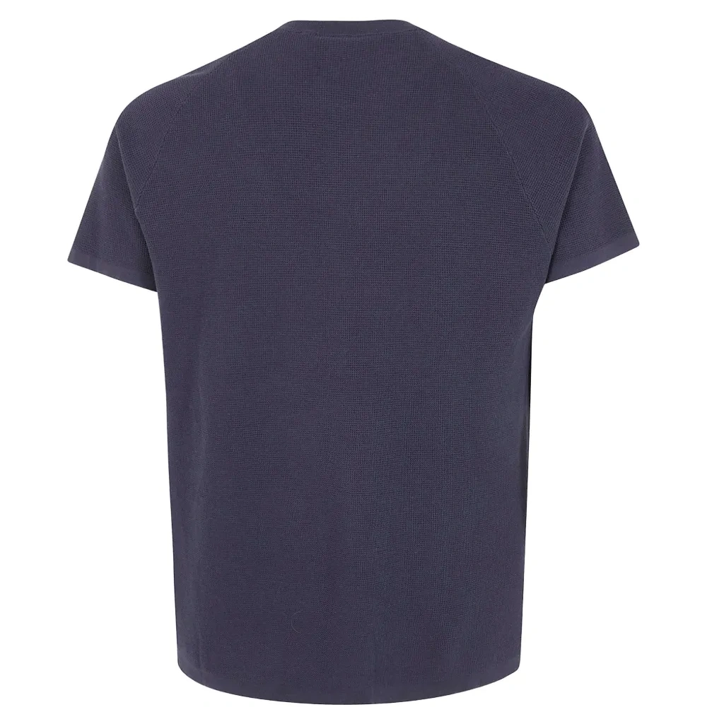 синий джемпер в вафельную вязку с круглым вырезом и короткими рукавами
