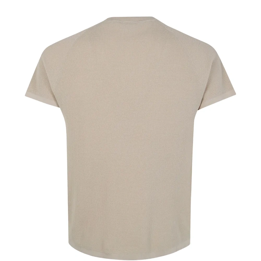 бежевый вафельный трикотаж, круглый вырез, короткие рукава, хлопок