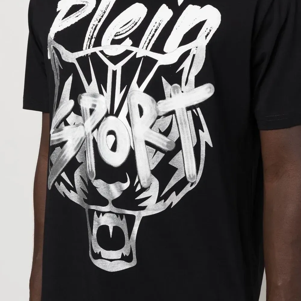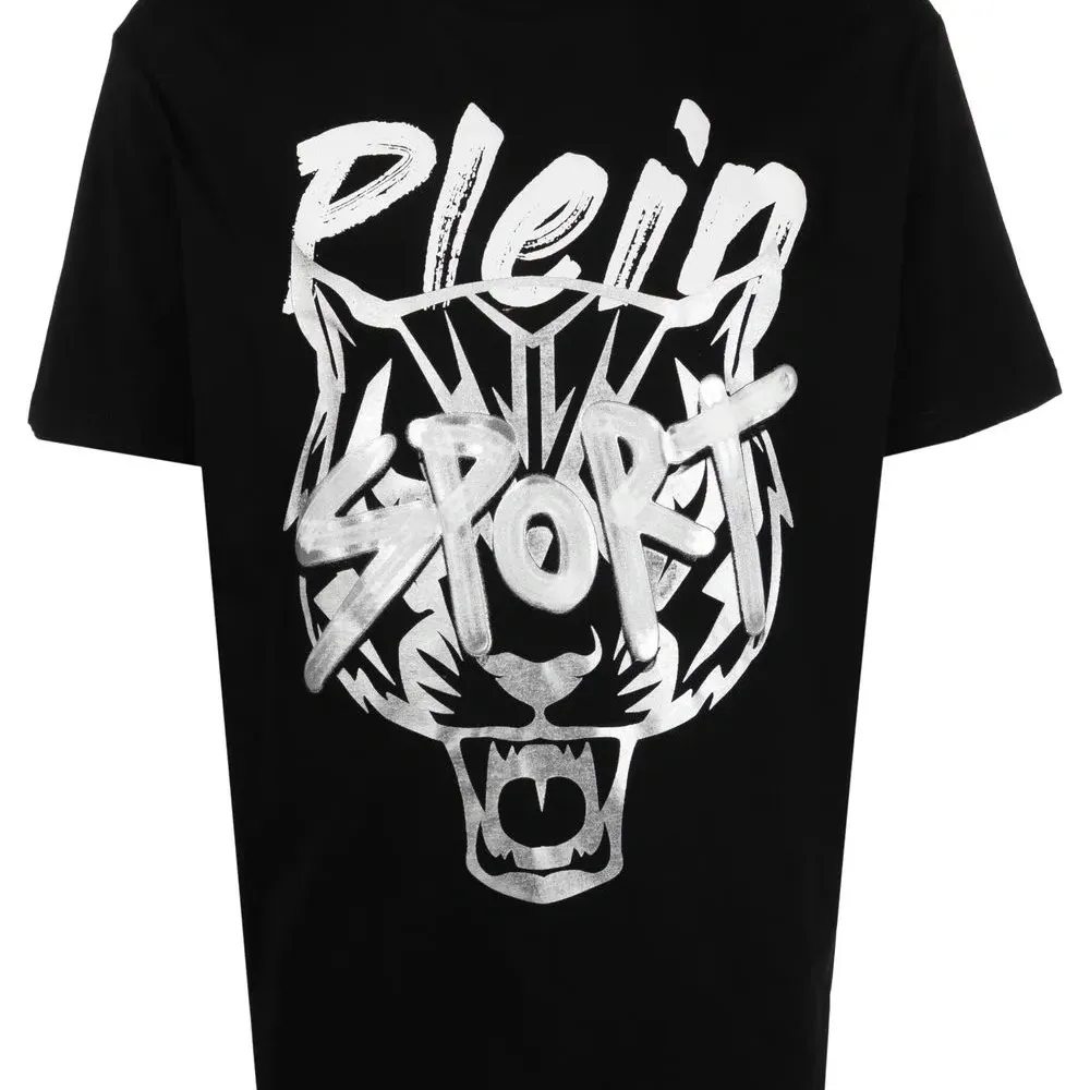 Черный, смесовый хлопок, декор Tiger Head, круглый вырез, короткие рукава и прямой подол.