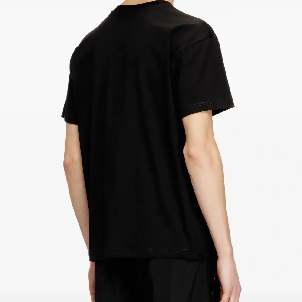 черная хлопковая футболка с круглым вырезом, короткими рукавами и однотонным логотипом