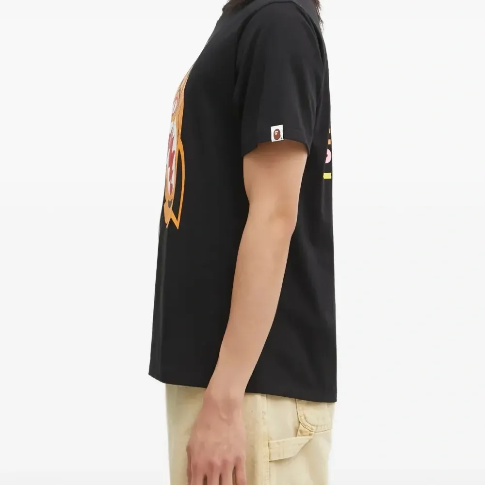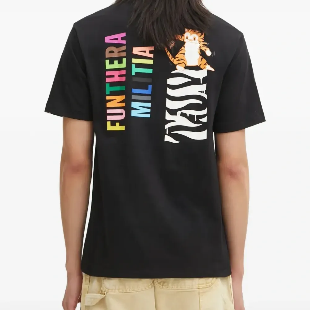 черная футболка с графическим принтом спереди и сзади, круглым вырезом и короткими рукавами