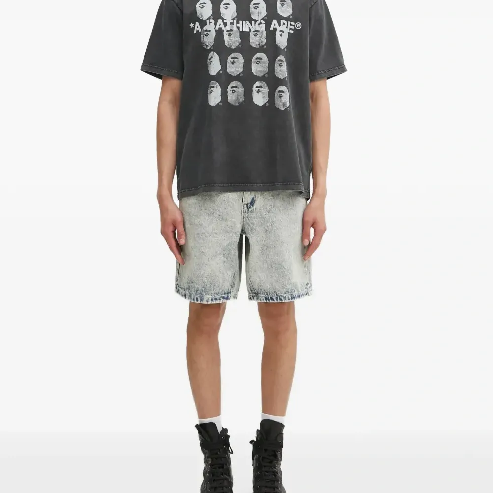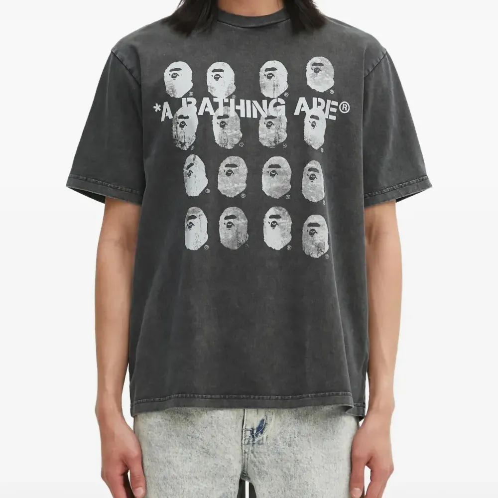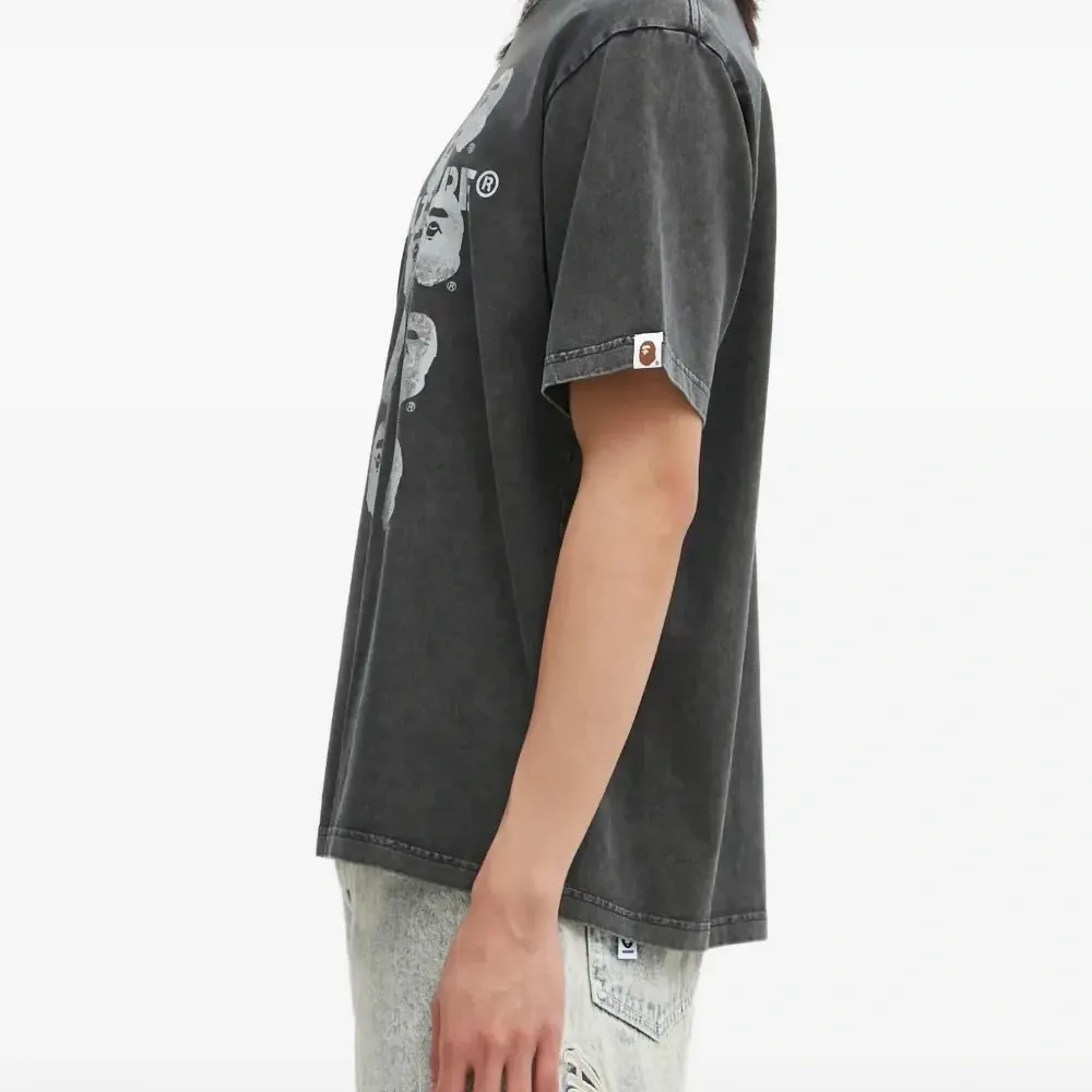 черная футболка с принтом логотипа спереди, круглым вырезом и короткими рукавами