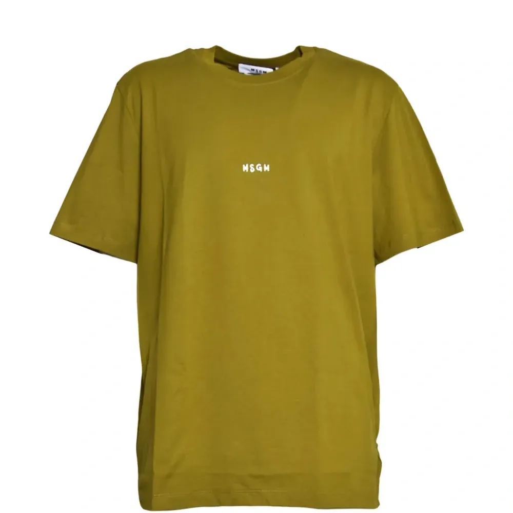 зелёная футболка с круглым вырезом, короткими рукавами и логотипом
