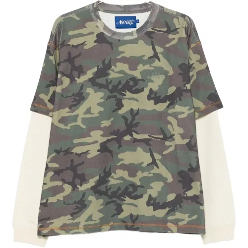 Футболка с камуфляжным принтом и двойными рукавами