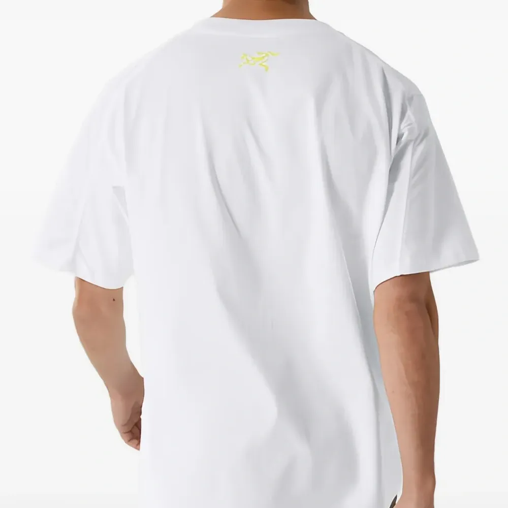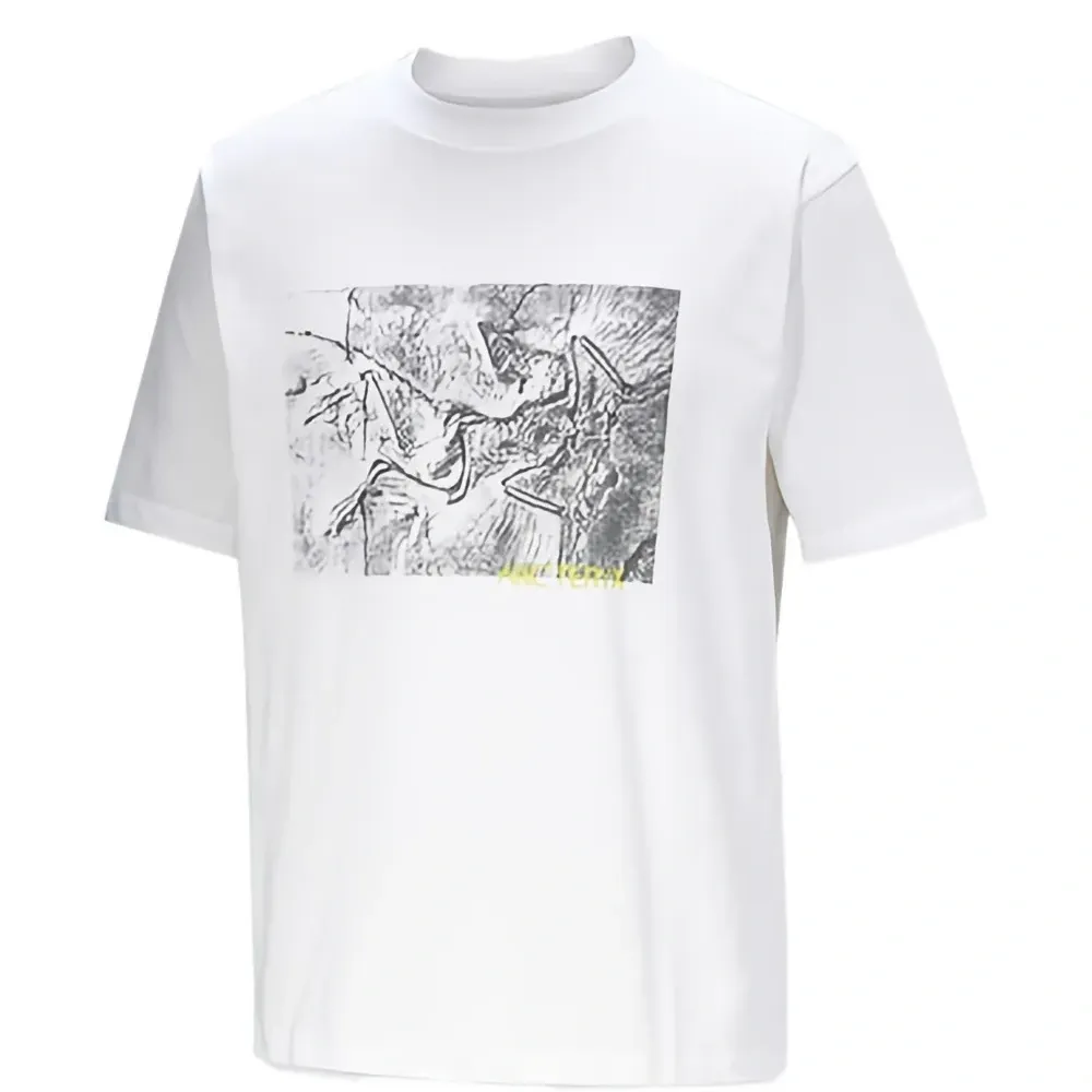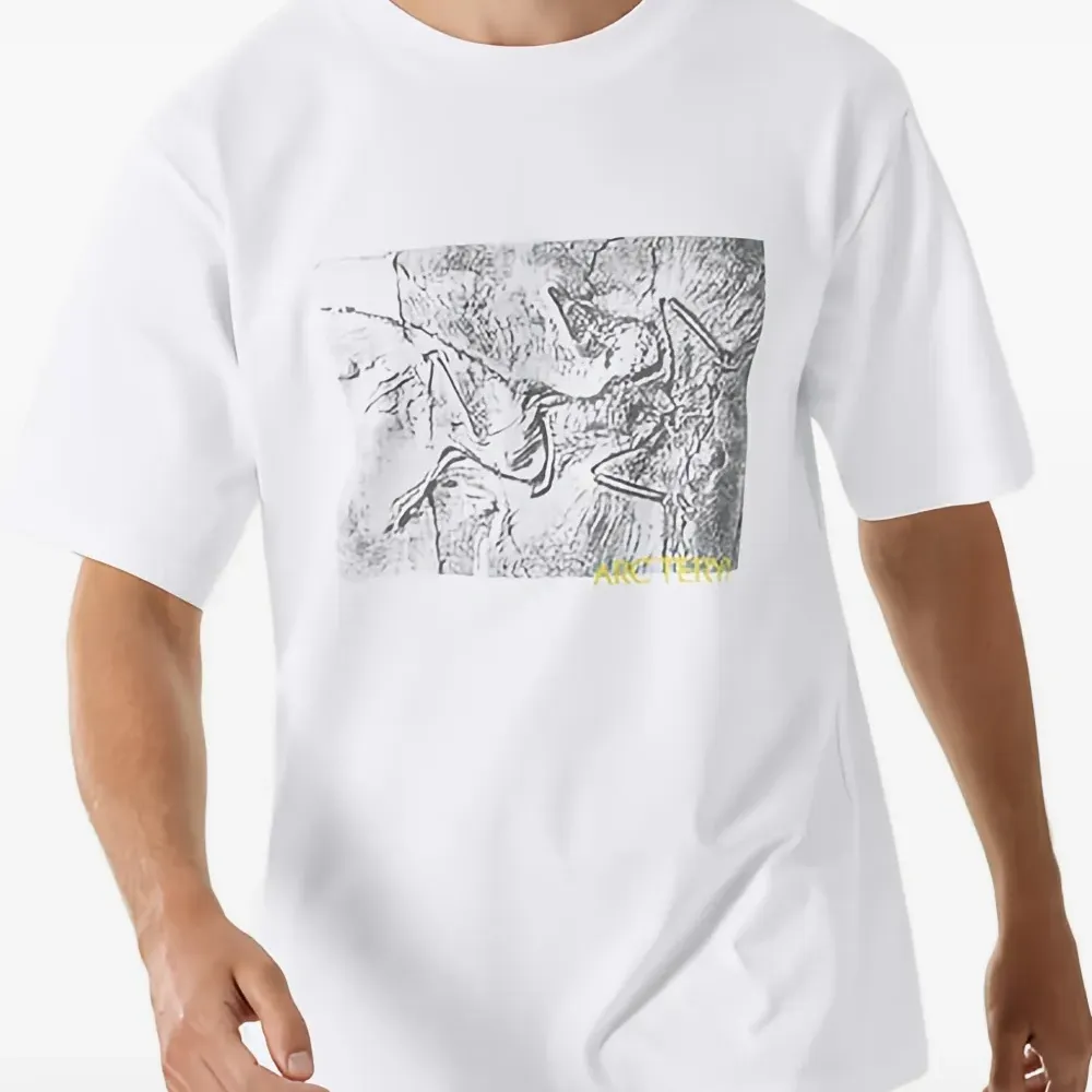 белая и серая футболка с графическим принтом и круглым вырезом