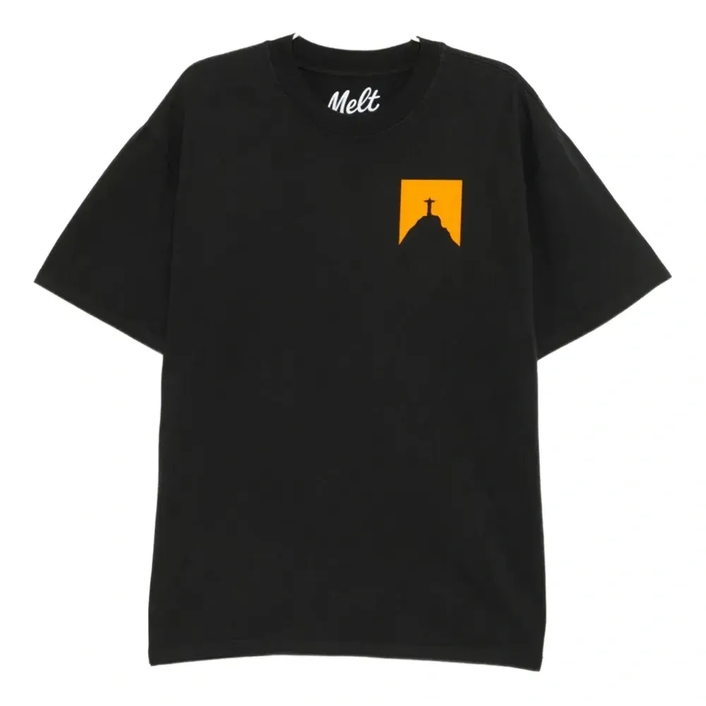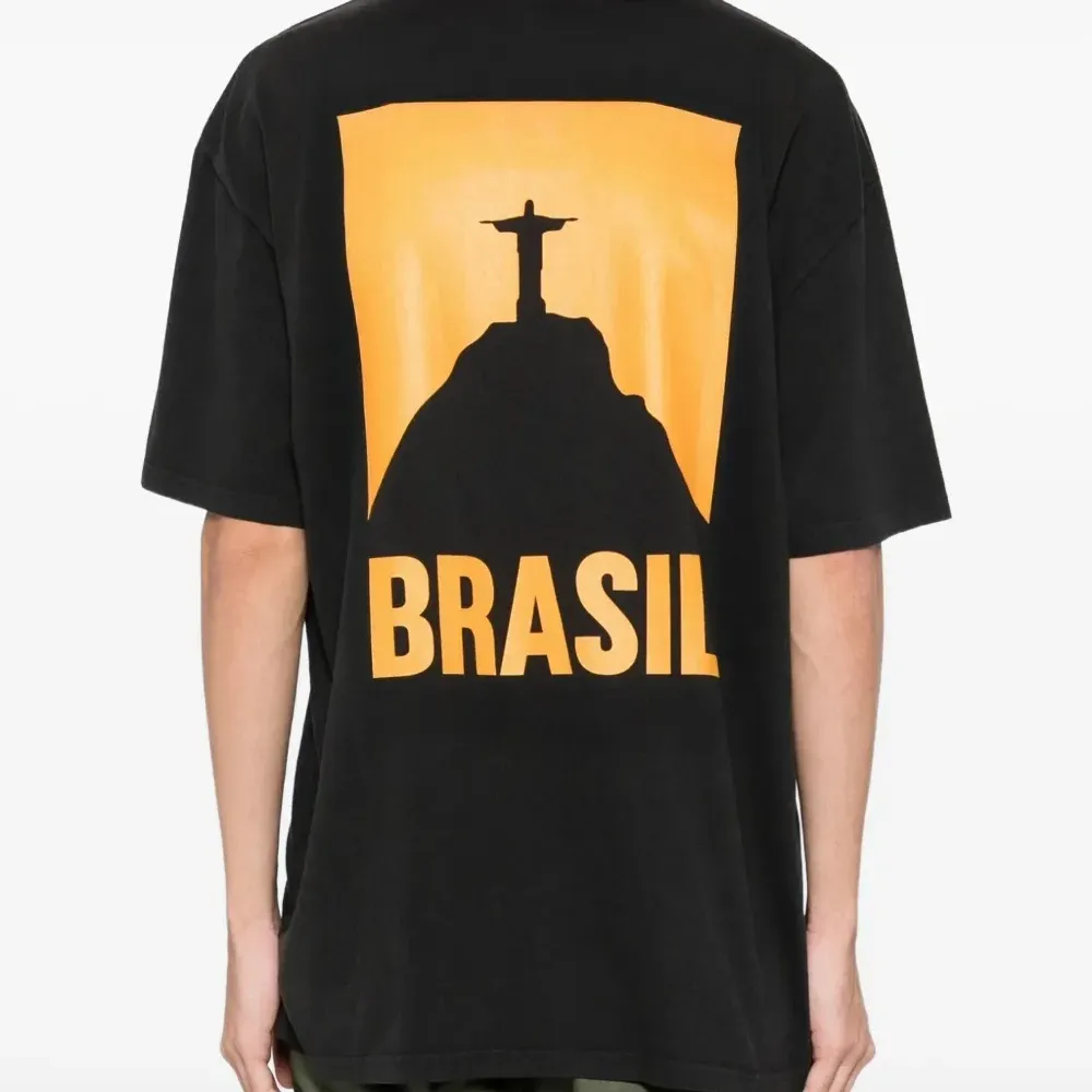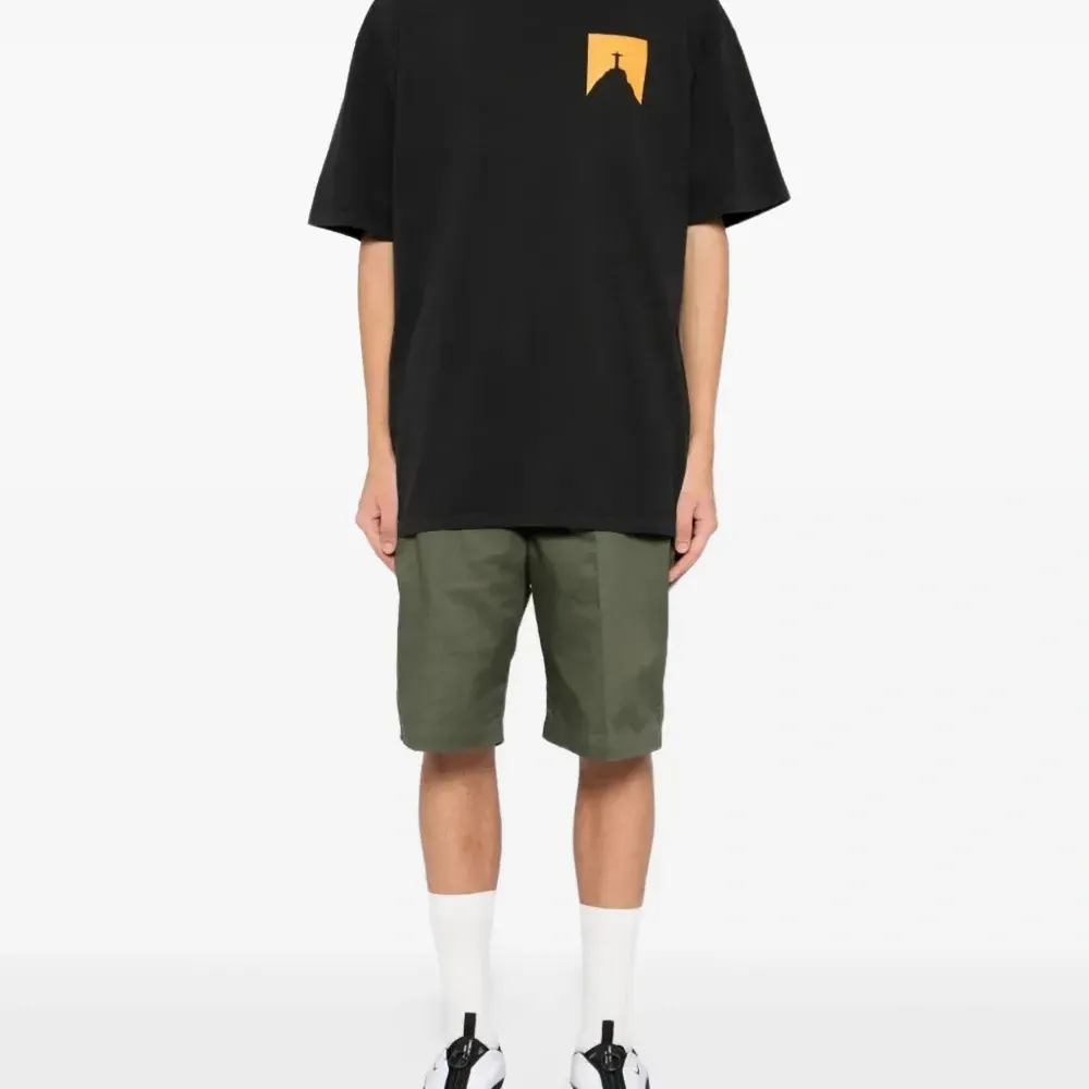 чёрная футболка с графическим принтом, круглым вырезом, короткими рукавами и прямым подолом из хлопка