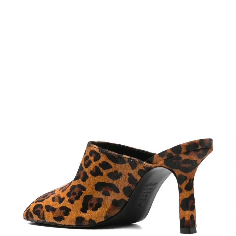Мюли на каблуке с анималистичным принтом