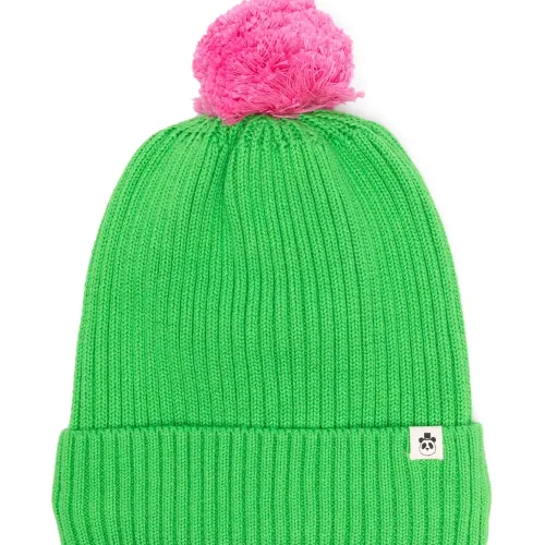 Расцветка Grass Green, нежно-розовый, хлопок, трикотаж в рубчик, сочетание двух оттенков, подвернутые поля, нашивка с логотипом спереди, помпоны и модель без застежки. Узнать больше о том, какие товары получают отметку «Ответственный выбор», можно из материала «Как мы оцениваем экологичность и этичность».