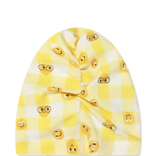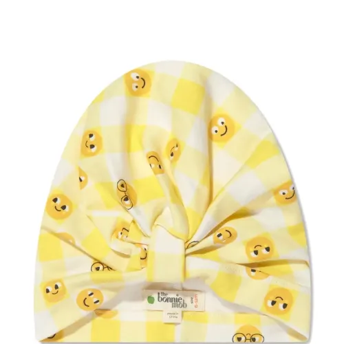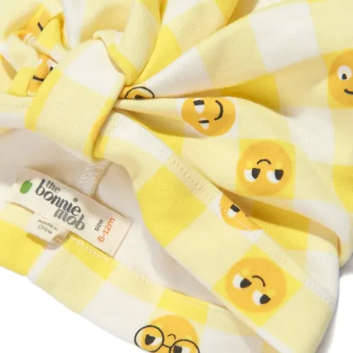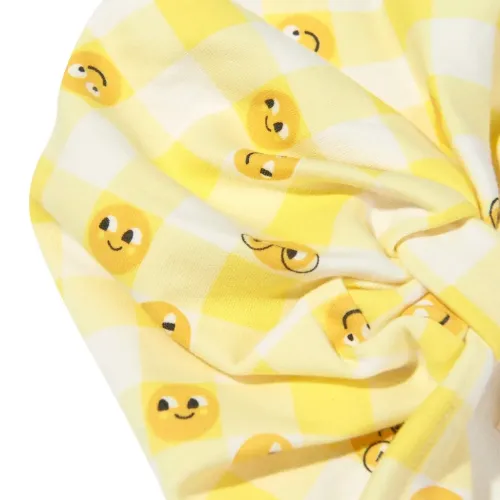 бледно-жёлтый клетчатый узор в стиле "виши" с принтом эмодзи, завязанный дизайн, мягкий хлопок, эластичная ткань
