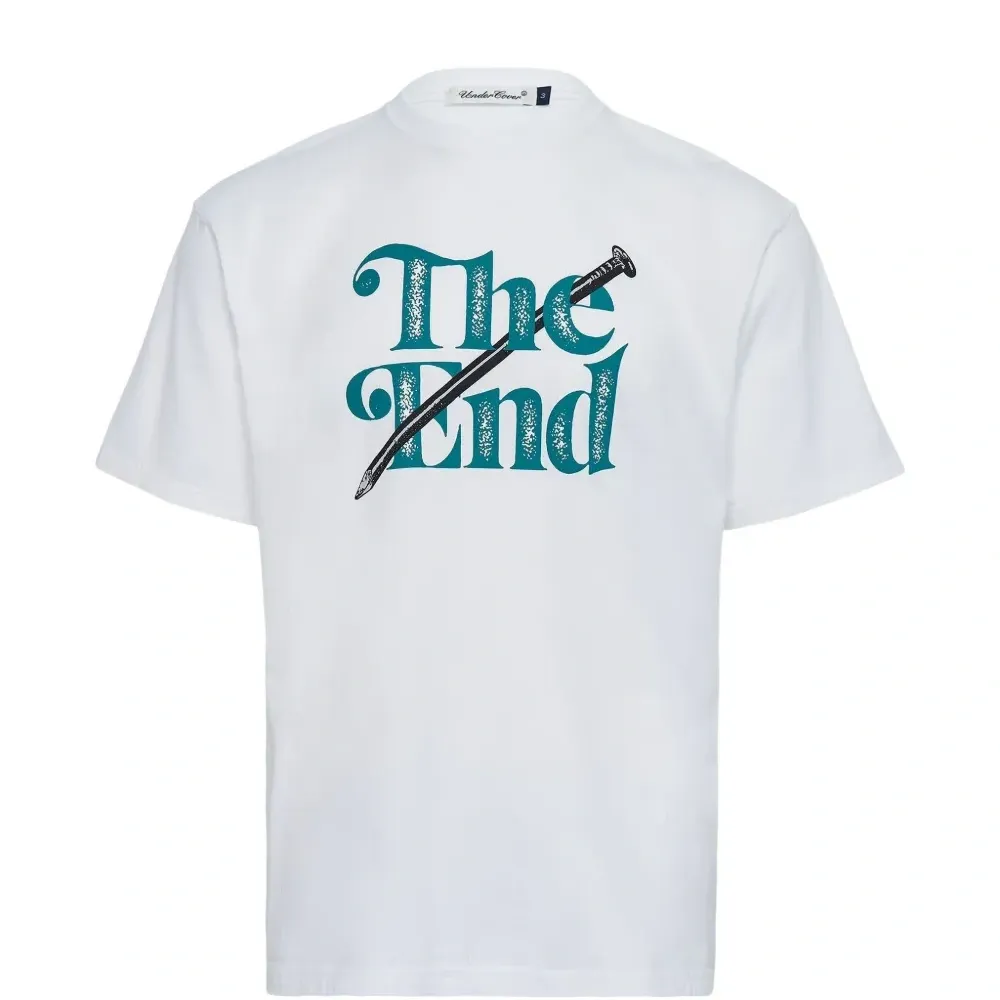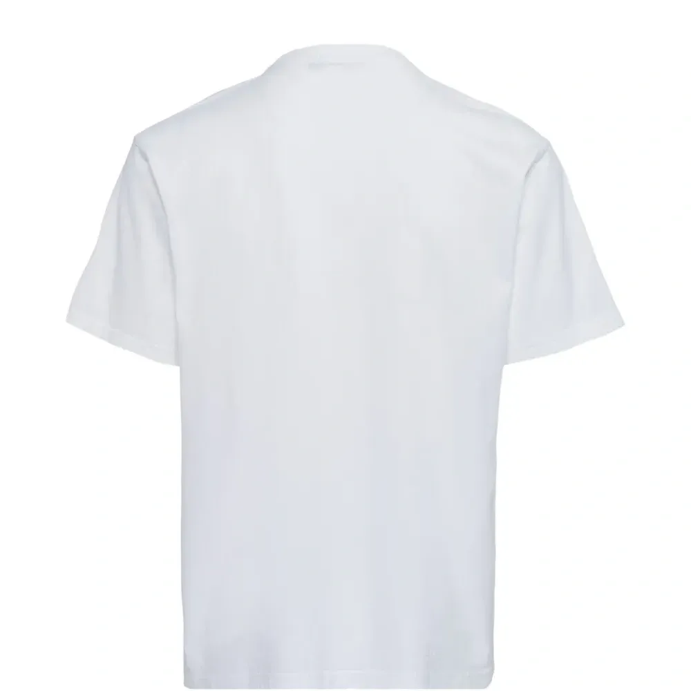 белая футболка с графическим принтом, круглым вырезом и короткими рукавами