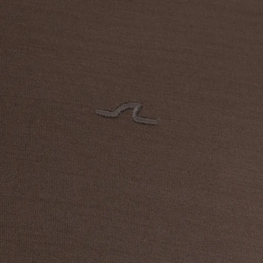коричневый свитшот с круглым вырезом, короткими рукавами, однотонной строчкой и прямым краем