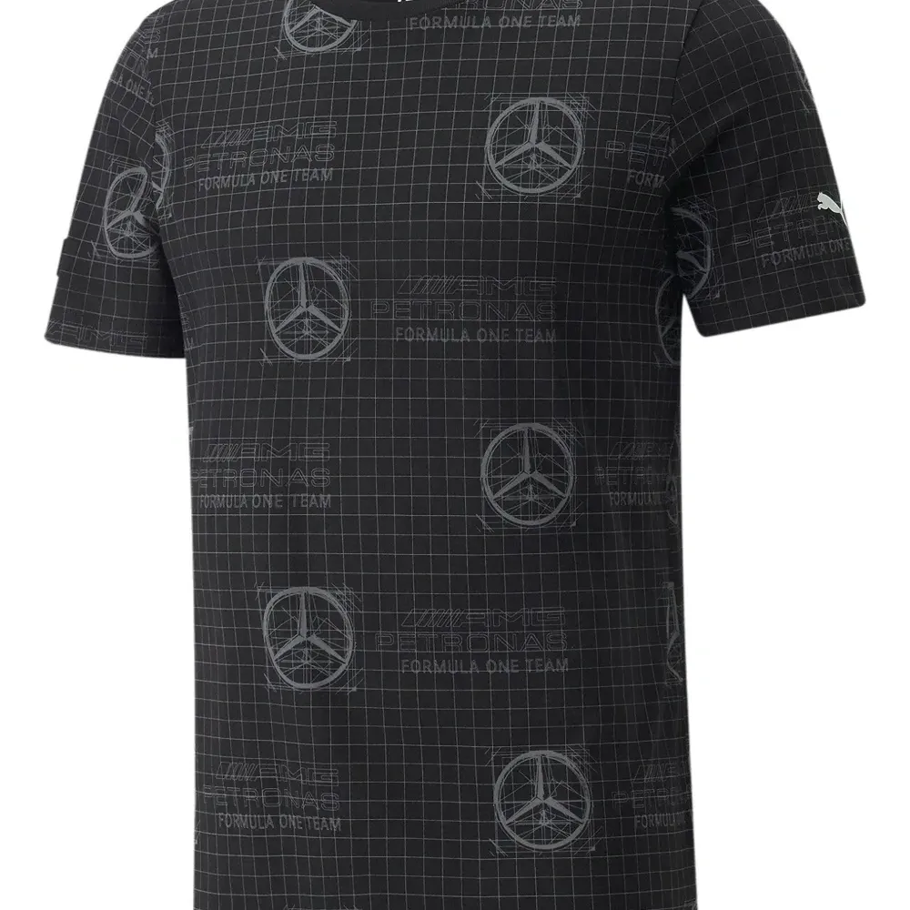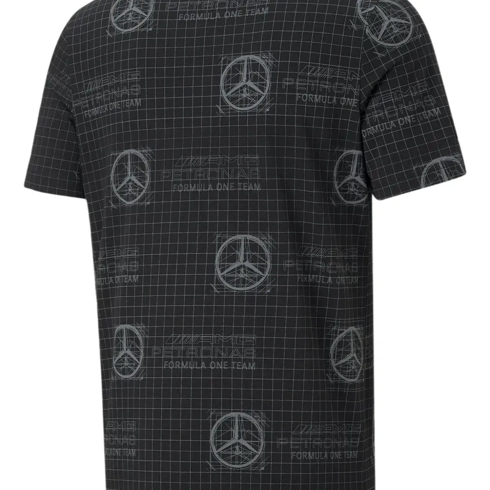 черная футболка с принтом по всей поверхности, короткими рукавами и круглым вырезом