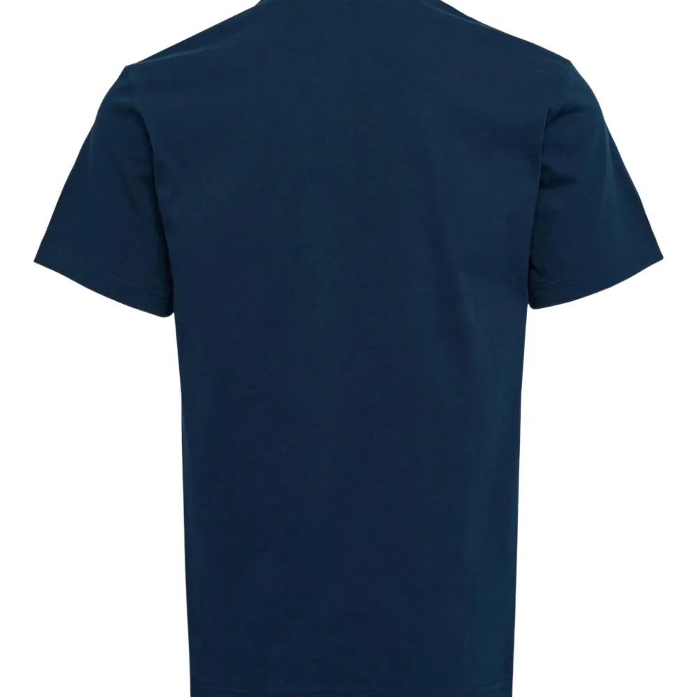 тёмно-синий дизайн в стиле колор-блок, круглый вырез, короткие рукава