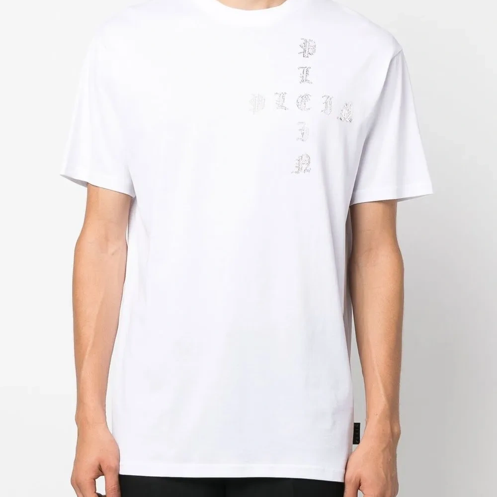 Белый, хлопок, принт в готическом стиле, логотип, круглый вырез и короткие рукава.