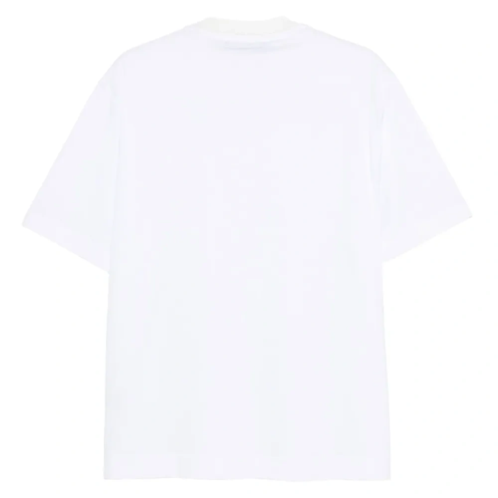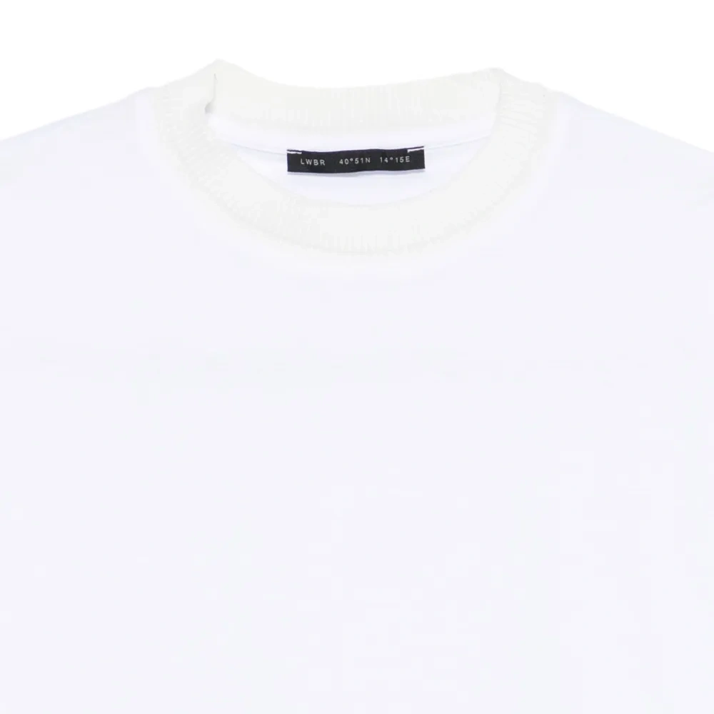 белая футболка с круглым вырезом, короткими рукавами, свободным кроем и трикотажной отделкой
