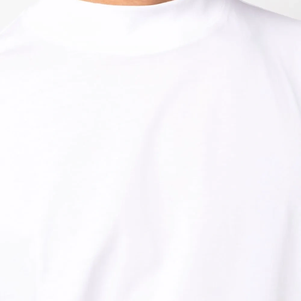 Белый, хлопок, круглый вырез, короткие рукава и прямой подол.