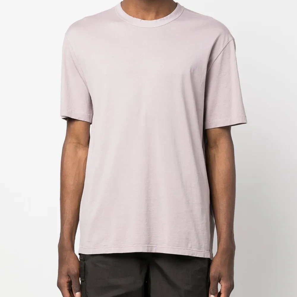 Пудрово-розовый, хлопок, нашивка с логотипом сзади, круглый вырез, короткие рукава и прямой подол.