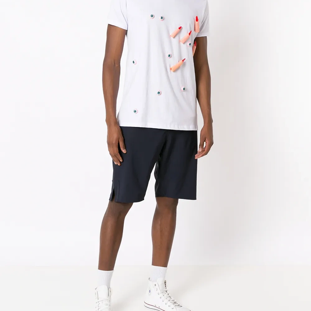 Ткань джерси, аппликация, круглый вырез, короткие рукава и прямой подол. Это унисекс-модель. Обратите внимание, что для нее используется мужская размерная сетка.