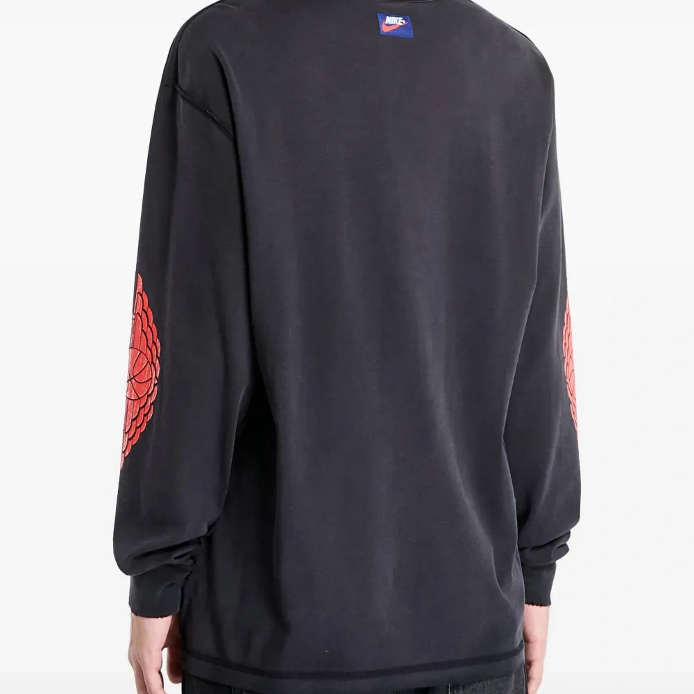 черный свитшот с графическим принтом и круглым вырезом, длинные рукава