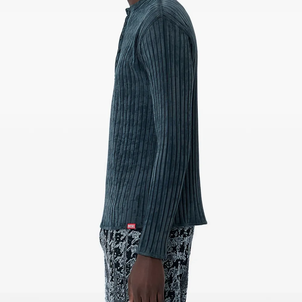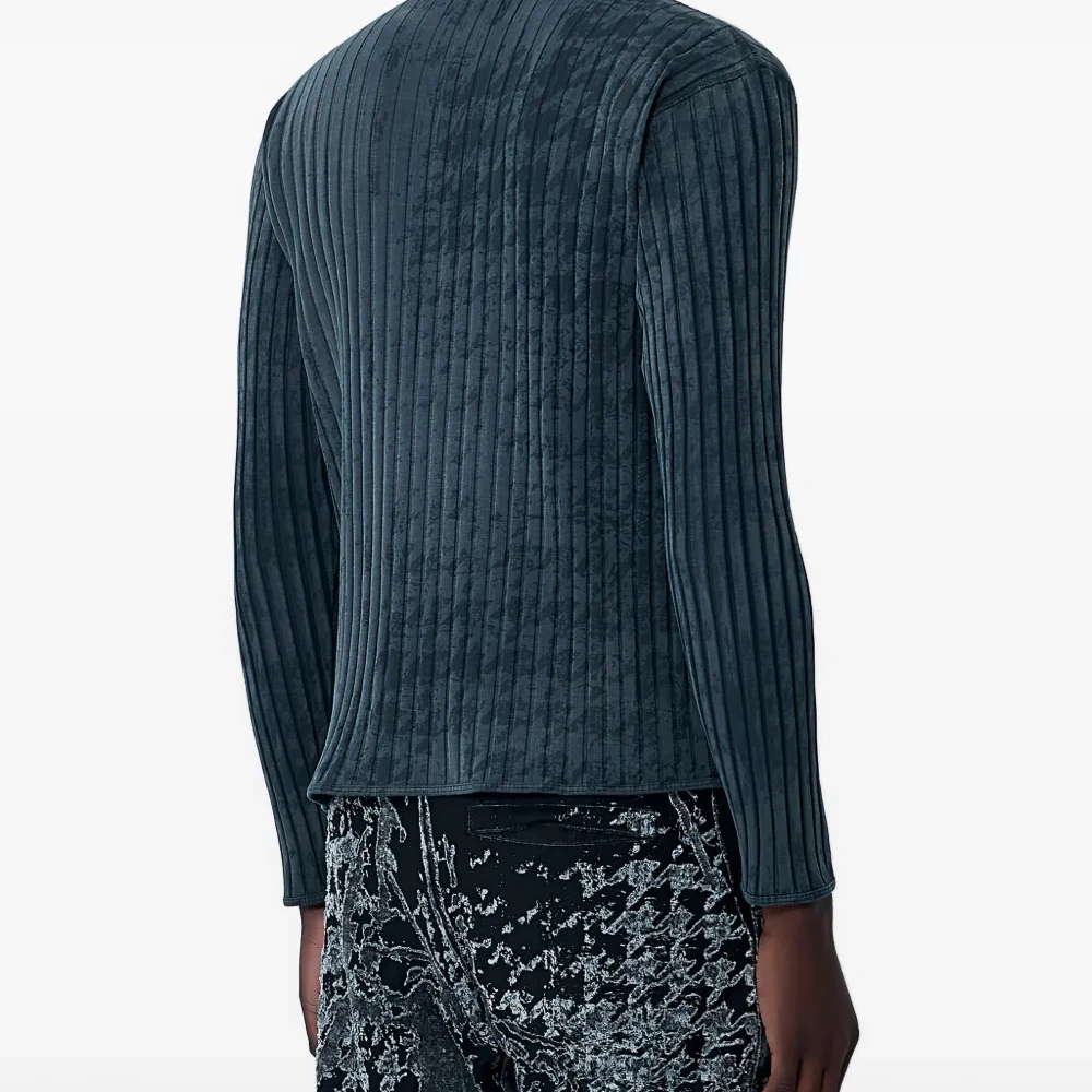 синий в рубчик, круглый вырез, застежка на пуговицы, длинные рукава