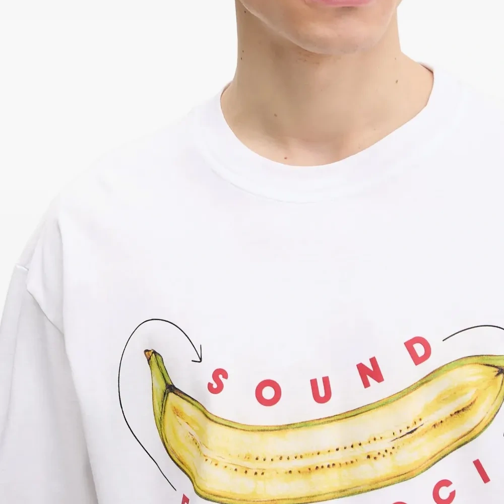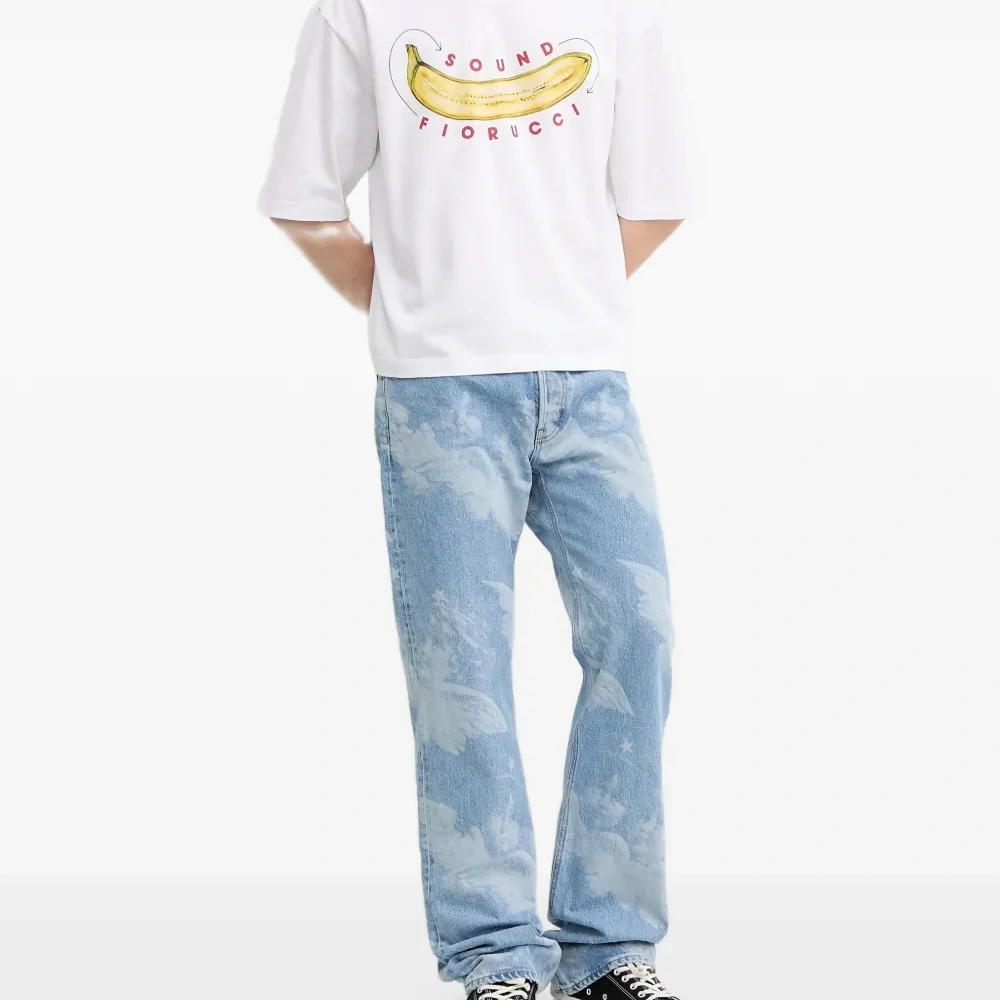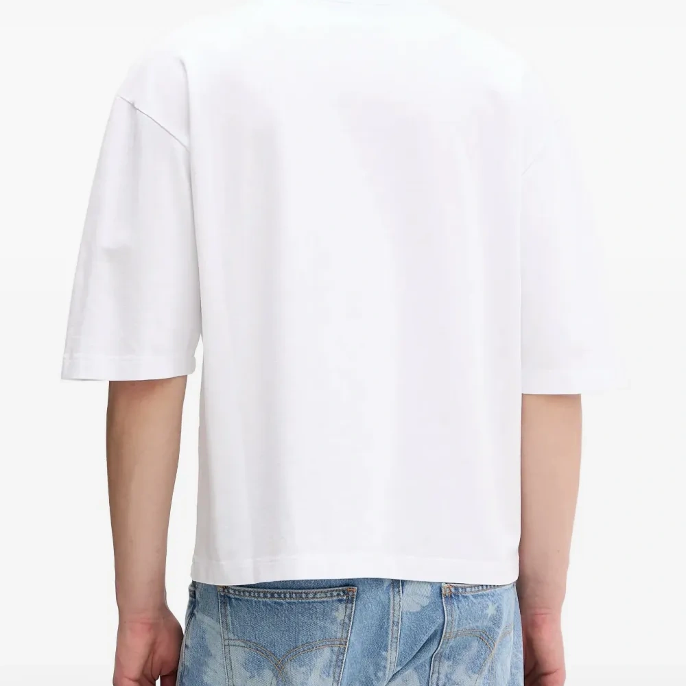 белая футболка с графическим принтом, круглым вырезом и короткими рукавами
