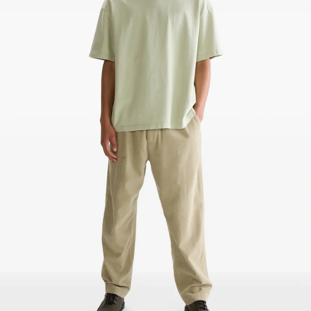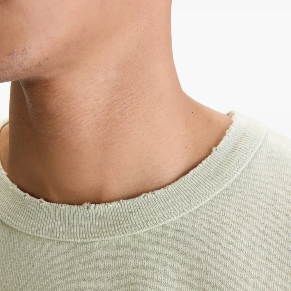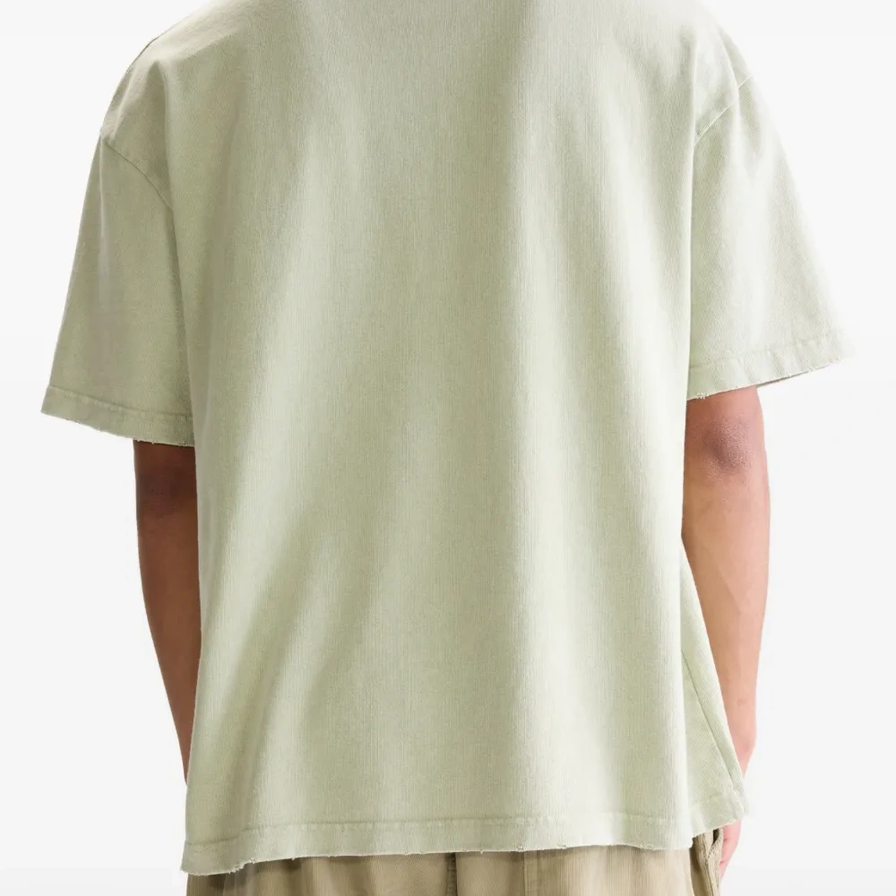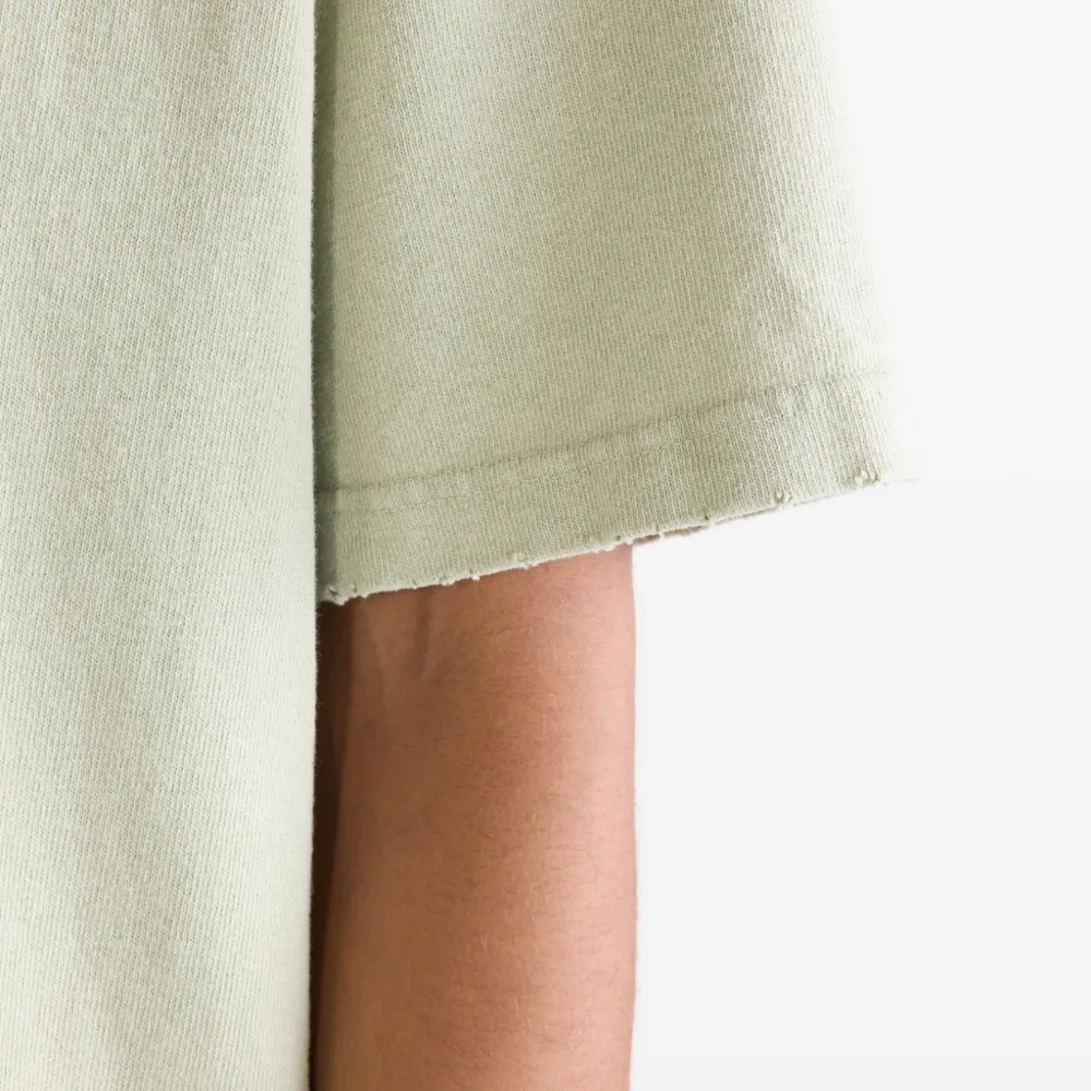 зелёный топ с оборванной отделкой, круглым вырезом, короткими рукавами и прямым подолом