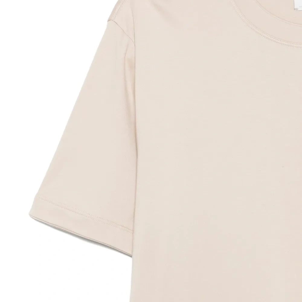 бежевый круглый вырез короткие рукава прямой низ хлопок