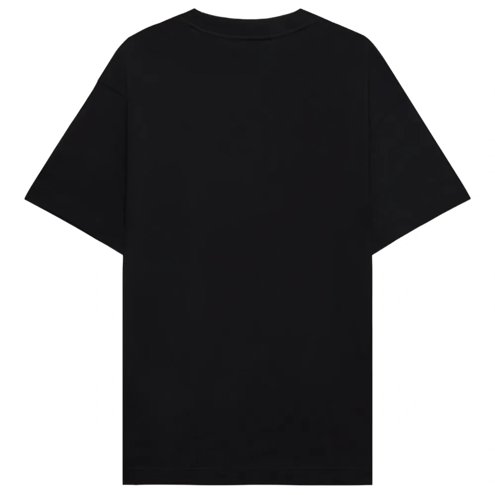 черная футболка с принтом в виде стекающего логотипа, круглый вырез, короткие рукава