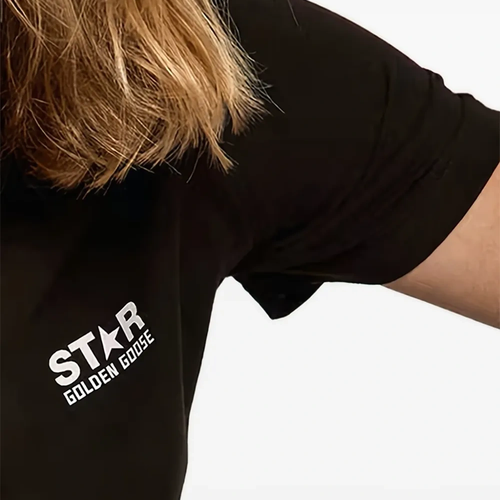 чёрная футболка с изображением звезды, круглым вырезом и короткими рукавами
