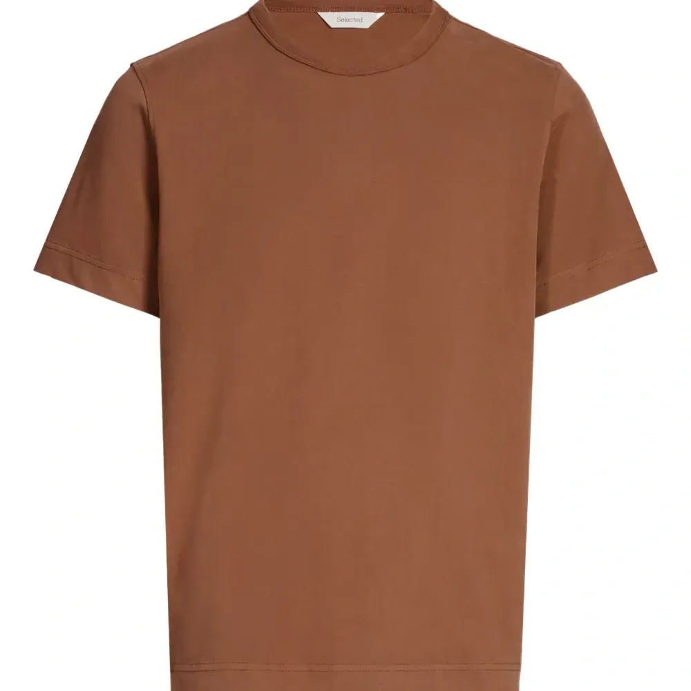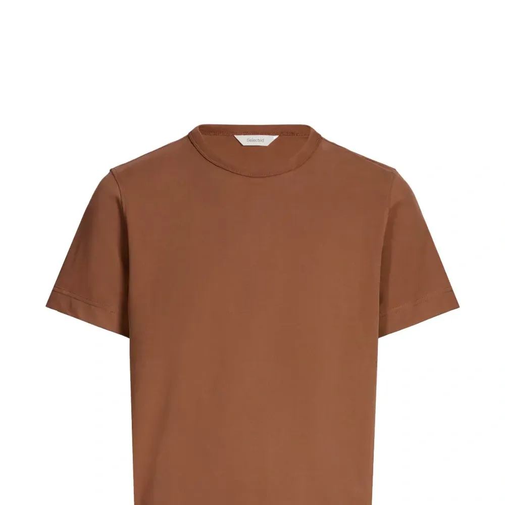 коричневая футболка с круглым вырезом и короткими рукавами