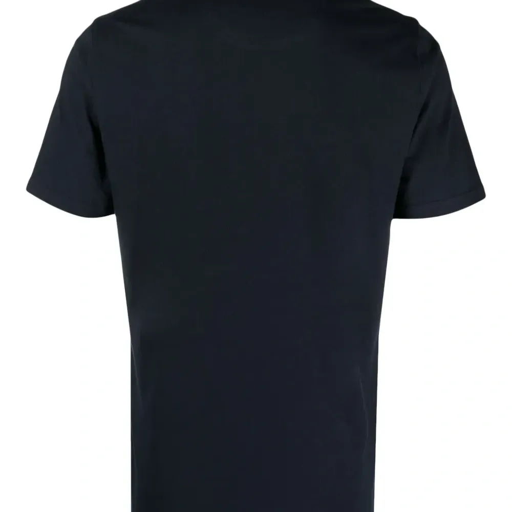 Темно-синий, хлопок, модель анорак, вышитый логотип на груди, круглый вырез, короткие рукава и прямой подол.