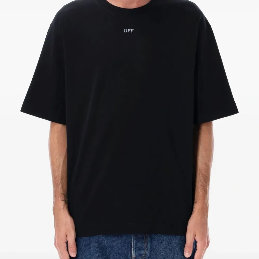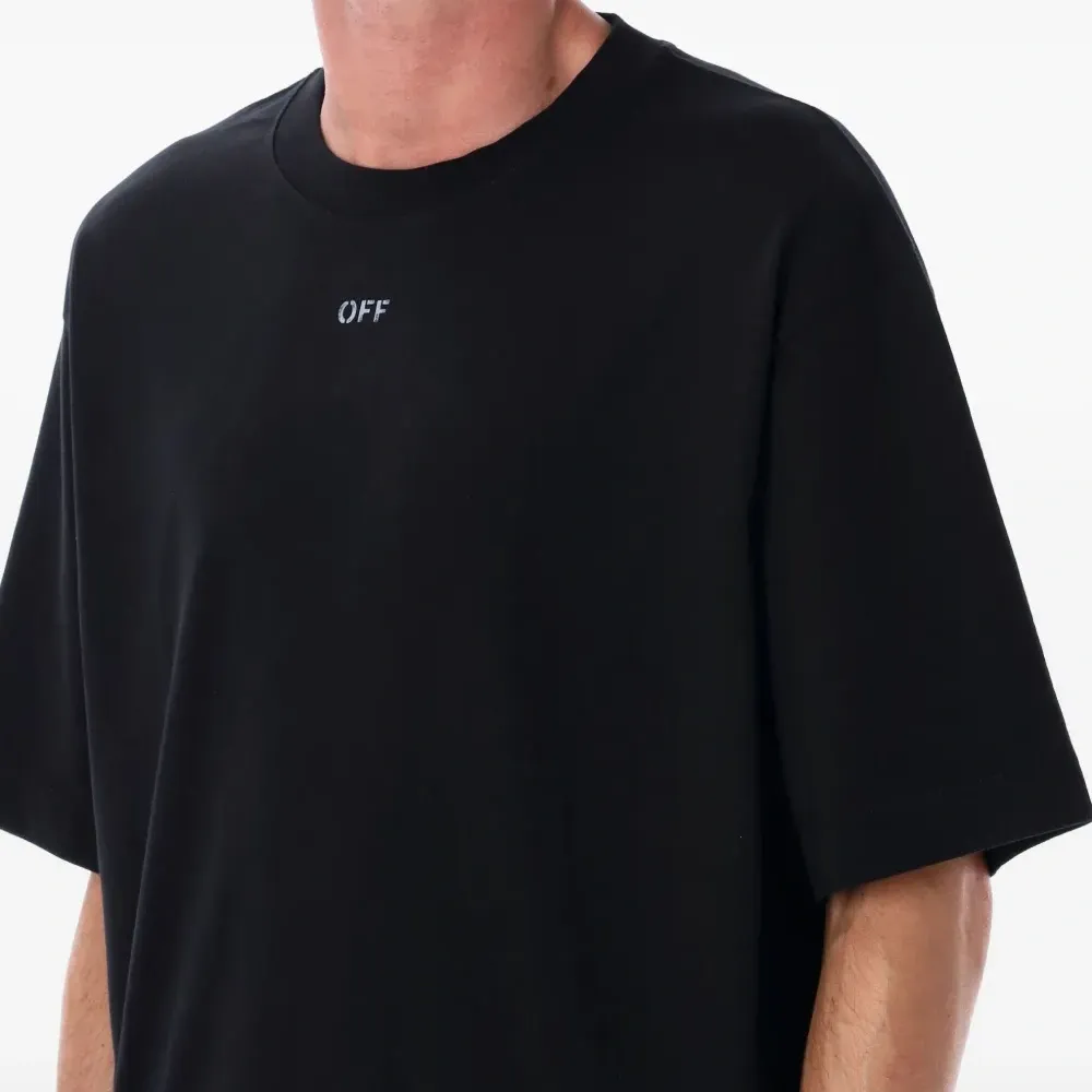 чёрный принт в виде стрелки трафаретной короткие рукава круглый вырез коробчатый силуэт