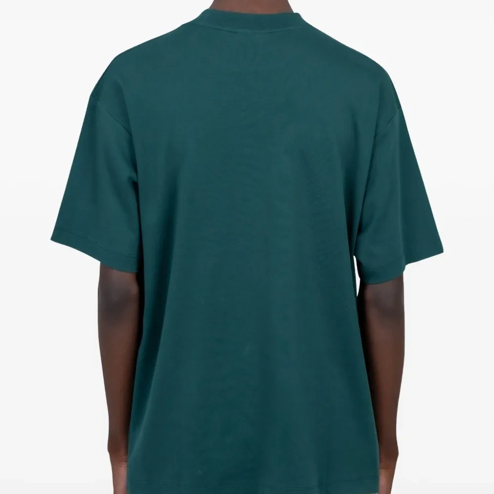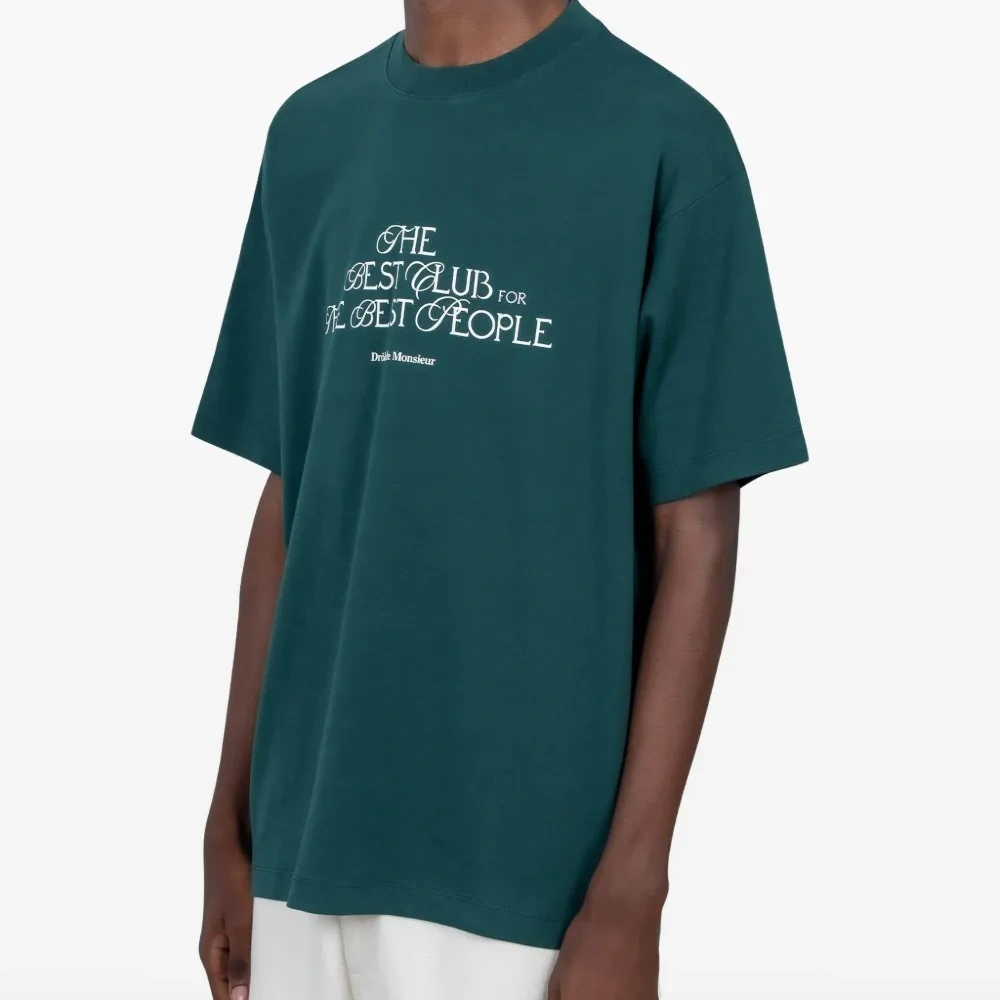 темно-зеленый хлопок короткие рукава круглый вырез графический принт с лозунгом