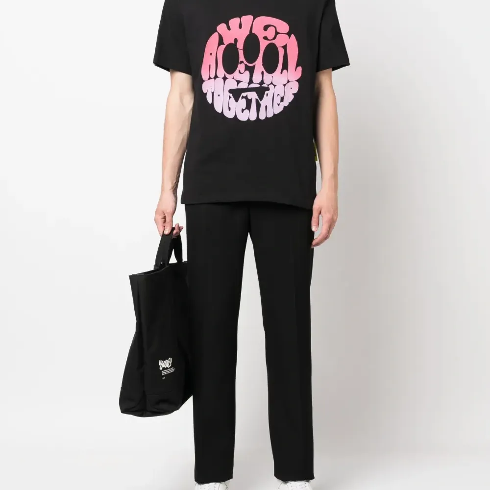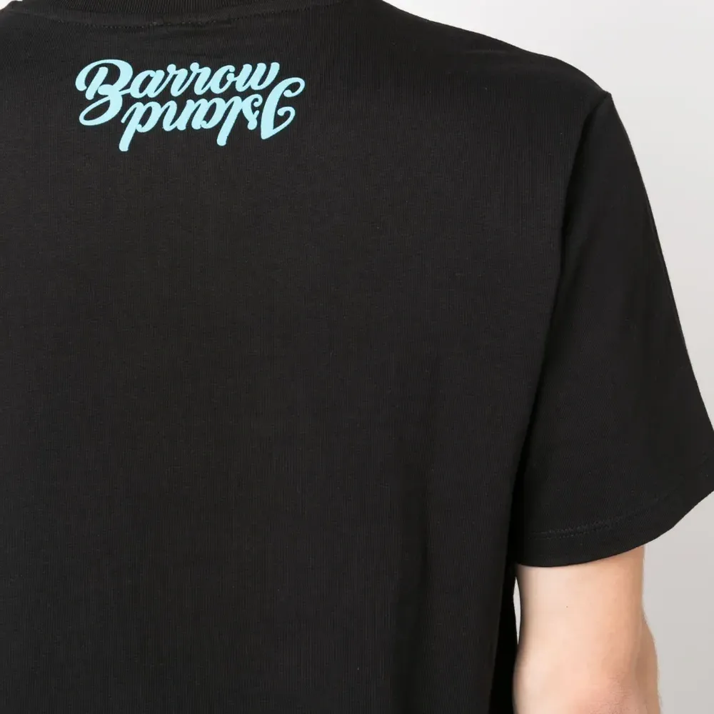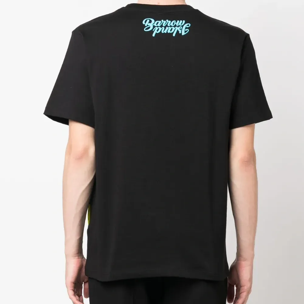 Черный, хлопок, графичный принт спереди, принт с логотипом сзади, круглый вырез, короткие рукава и прямой подол.